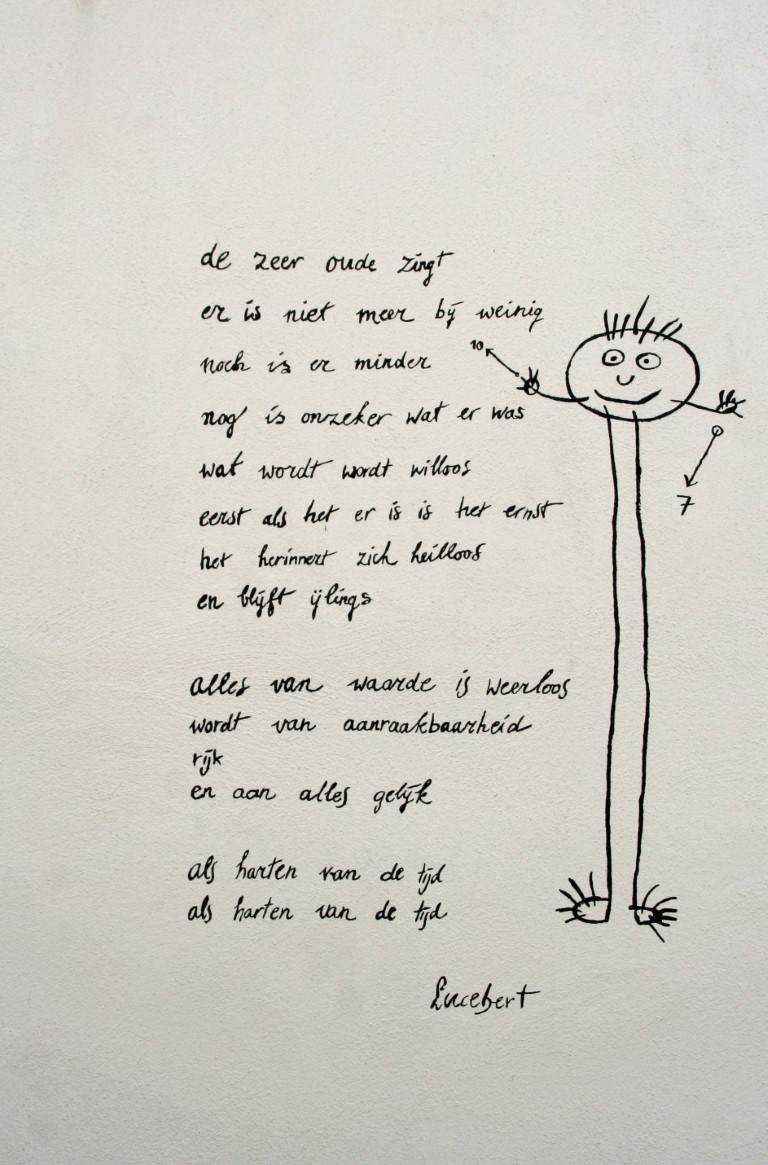 Een aantal teksten zoals deze op de muren in Naarden-Vesting te zien zijn.