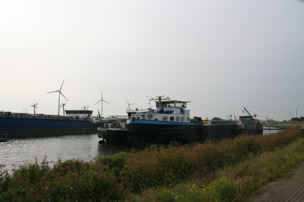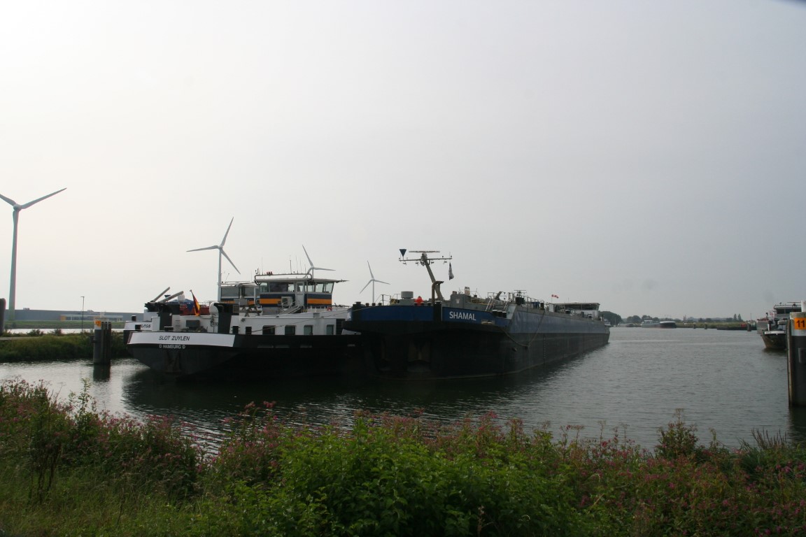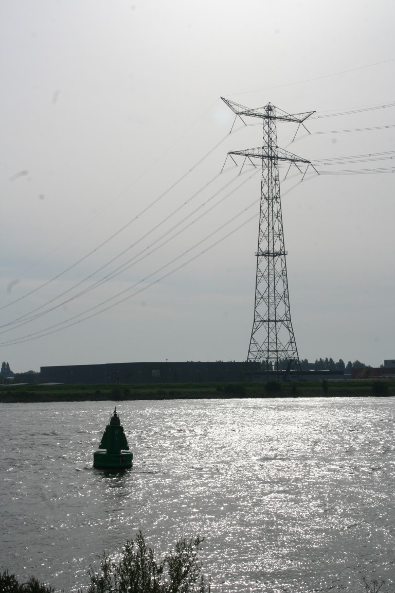 We krijgen een mooi zicht op het Hollands Diep en de industrie bij Moerdijk.