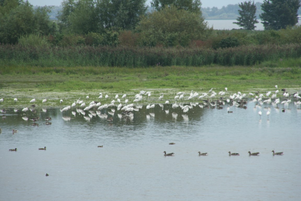 Bij Numansdorp, of beter gezegd: bij de Ambachtsheerlijkheid Cromstrijen, ligt op de oever van het Hollands Diep een natuurgebiedje: de Oosterse Bekade Gorzen. Omdat hier twee maal per dag grote stukken slik droogvallen, kun je hier bijzondere steltlopers zien. Hier zien we dan ook een grote kolonie lepelaars.