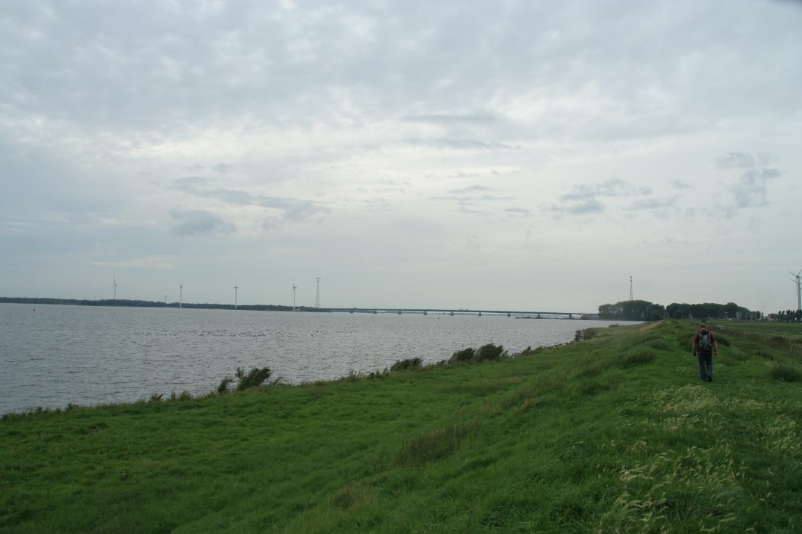 Zo bereiken we het eindpunt van deze etappe, de Haringvlietbrug. Vandaar nog richting de bushalte langs de snelweg wandelen.