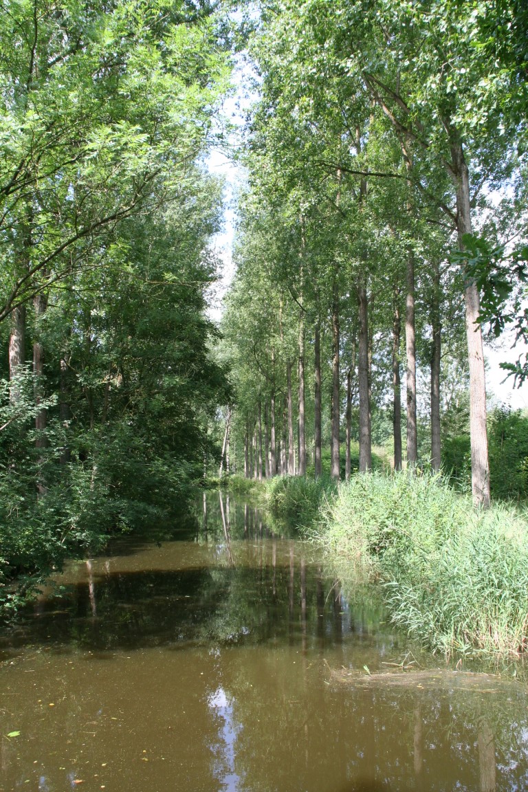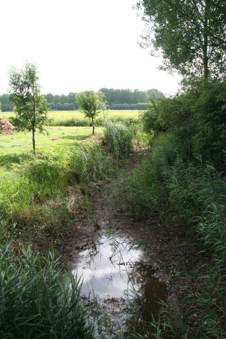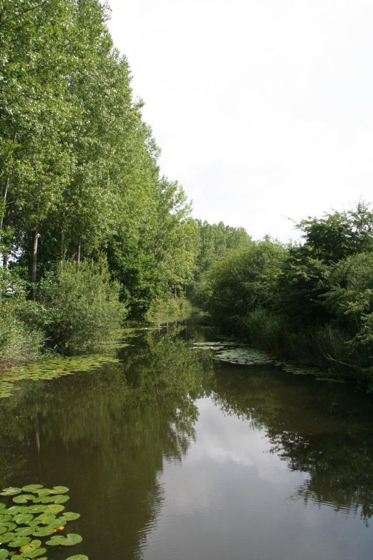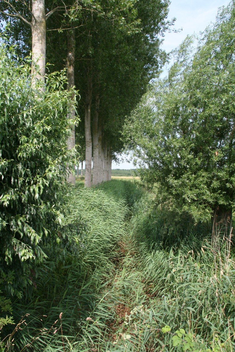 We wandelen verder door de Turfmeersen richting de Moerloop.