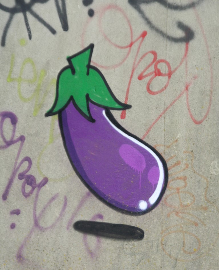 Met een muurschildering van een aubergine komen we aan het eind van deze etappe.