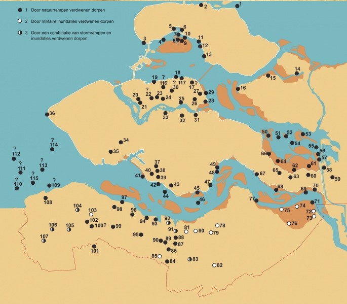 Bovenstaande dorpen zijn verdwenen na de Sint Felix vloed van 1530