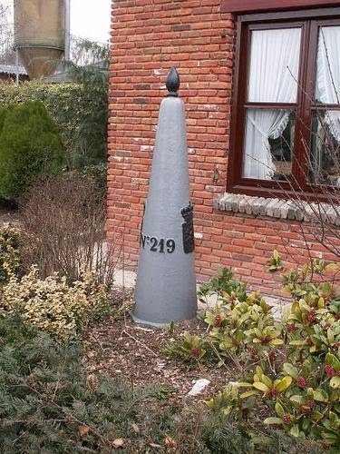 In het dorp Meersel-Dreef zien we onderstaande grenspaal staan. Deze grenspaal staat in de voortuin van een woning, maar grenspaal 219 is vanaf de straat te zien.