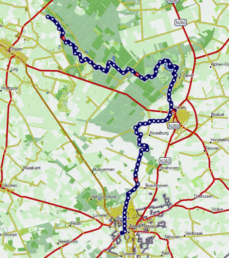 Deze etappe loopt van Chaam naar Baarle Nassau/ Hertog. De route van Alphen naar Baarle Nassau/ Hertog is een toegift op het Grenslandpad. De wandeling gaat via de Chaamse bossen, recreatie park ‘t Zand richting Alphen.