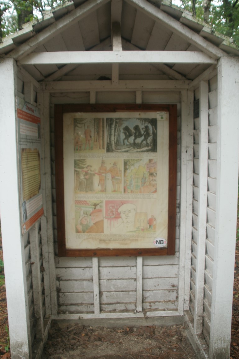 “Het rad van Raeybergh” werd hier in 2012 opgericht, op een (flinke) boogscheut van de plaats waar het oorspronkelijk heeft gestaan. Lokale rechtbanken konden eeuwen geleden ook doodstraffen uitspreken en die werden uitgevoerd op locaties buiten de dorpen, zoals hier op Raaiberg. In 1340 zou Nout Goetlief geradbraakt zijn op “het rad van Raeybergh” en in 1767 was het de beurt aan Elias Breukeleer om hetzelfde lot te ondergaan. Aan hem is de symbolische grafsteen gewijd met de tekst: “Hier wier Elias Breukeleer gerugbraakt En den kop afgeslagen. Vur straf heeft hi de pine moeten verdraghen. Sin lijf ghebonden op ’t rad Vur craeyen en gieren. Een waarschuwinge vur den passant Met foute manieren!”