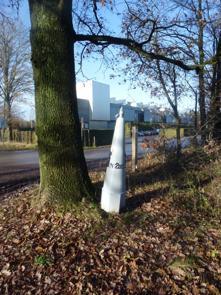 Tijdens de wandeling zien we ook weer eens een grenspaal. GP 202 duidt het contactpunt aan tussen Mol (B), Arendonk (B) en Reusel (NL). De eerste twee (2) is wel een rare. Hij is een beetje goot uitgevallen