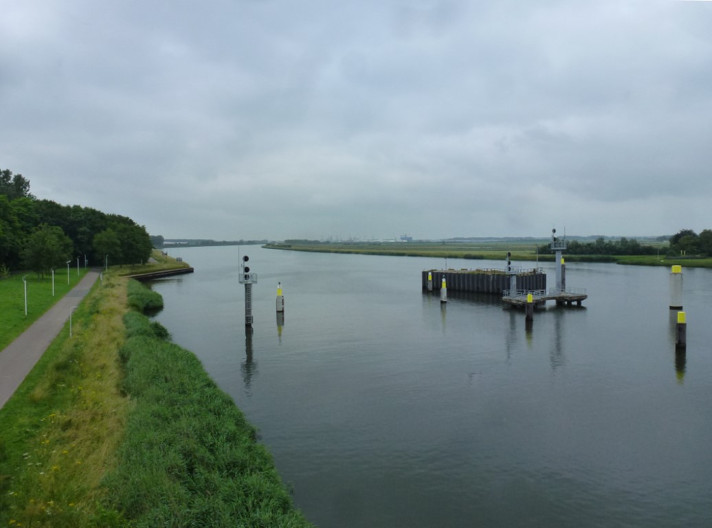 Over de brug richting Westdorpe. Vandaar gaat het verder richting Canisvliet naar het einde van deze etappe. Het gebied was ooit een zijarm van de Honte. Na de sluiting van de Graaf Jansdijk (1790) en de Sasdijk kon het deels worden drooggelegd, waarbij de Canisvliet binnenpolder en de Canisvliet buitenpolder ontstonden, beide ten oosten van het huidige terrein.