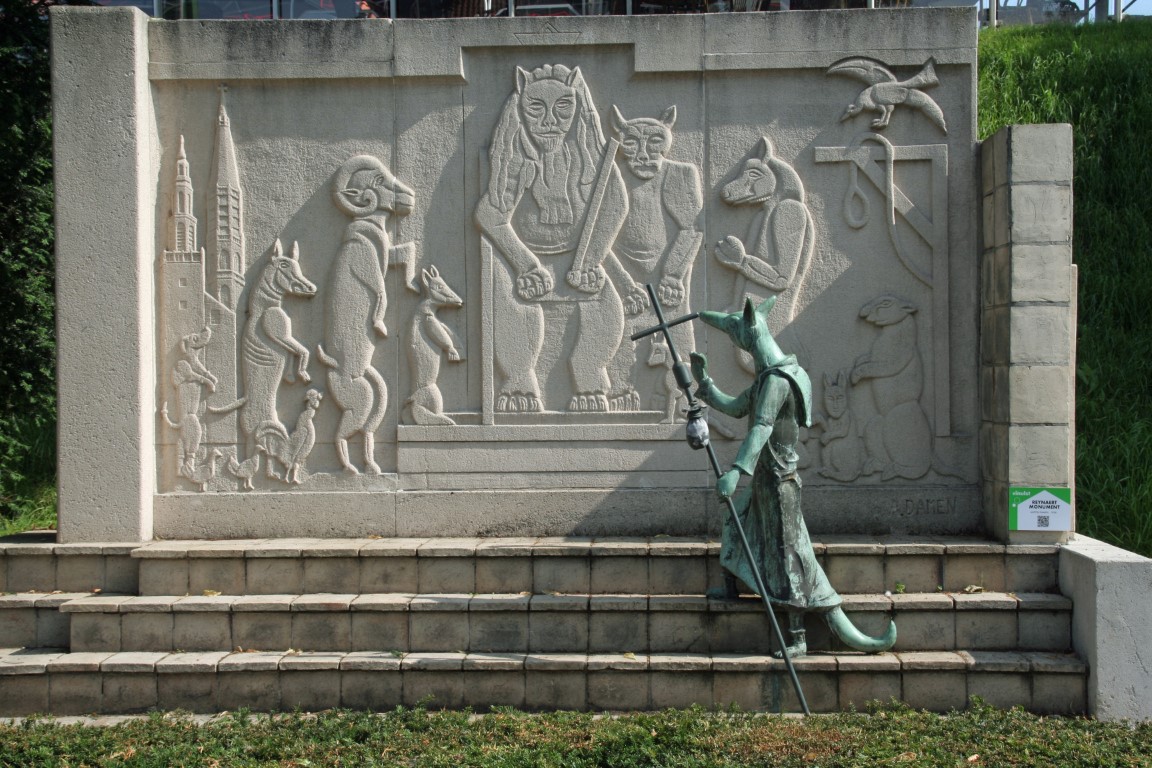 Naast de Gentse poort staat het beeld van Reinaert de Vos.