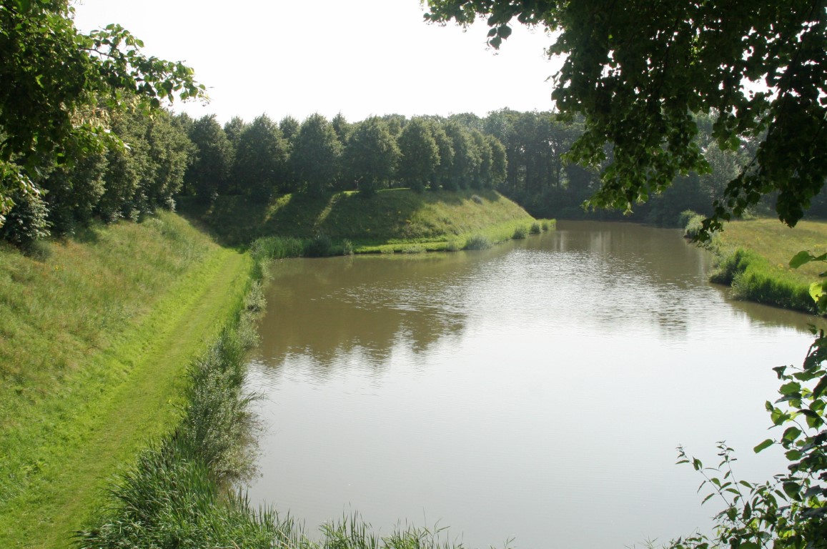De 3,5 km lange stadswallen welke zijn aangelegd tijdens de Tachtigjarige Oorlog. De omwalling die is aangelegd volgens het principe van het Oud-Nederlands Stelsel, is niet overal even hoog. In het zuiden bedraagt het hoogteverschil tussen kruin en onderwal slechts acht meter, omdat het buitengebied aan deze kant kon worden geanundeerd. Bovendien werd hier een dubbele omgrachting aangelegd. Het gebied ten noorden van de stad kon vanwege de hogere ligging niet onder water worden gezet. Daarom zijn de wallen daar niet alleen steiler, maar ook meer dan tien meter hoog. Oorspronkelijk lagen er vijf ravelijnen in de vestinggracht, waarvan vier aan de noordzijde. Tussen de Ravelijnen en de hoofdwal lagen houten bruggen. Negen bolwerken omringen de stad.