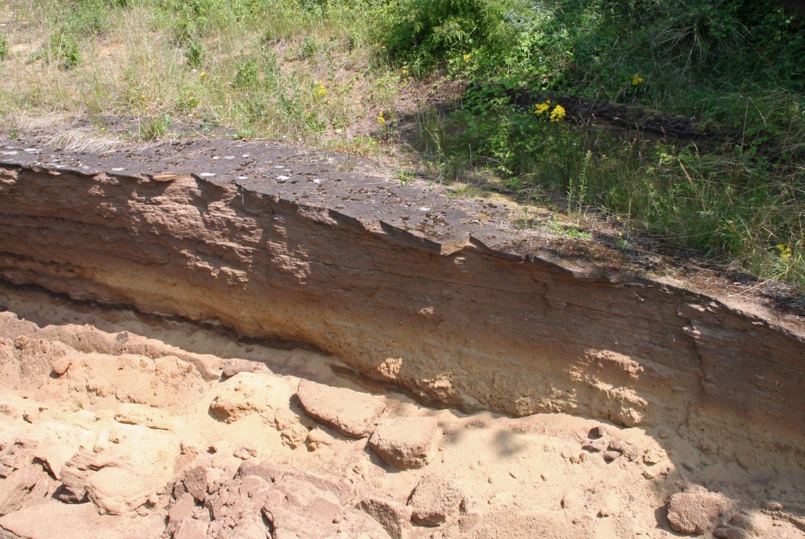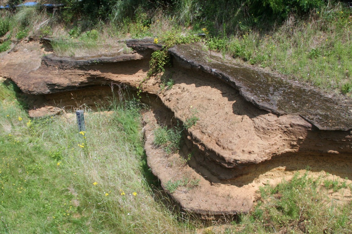 Hier bevond zich vanouds een zandbult, Den Hoogen Kauter genaamd, welke een vijftal meter boven het maaiveld uitstak. Vanaf de 17e eeuw bevond zich hier een zandgroeve. De groeve is de enige plaats in Europa waar de overgang van Plioceen naar Pleistoceen ontsloten is. In het Plioceen bevond zich hier een zeestrand (Formatie van Merksem), terwijl de Pleistocene afzettingen dakrandenzijn. In de ontsluiting zijn fossielen te vinden van zee-egels en andere dieren die hier een miljoen jaar geleden in zee leefden. Ook uit jongere tijden vindt men er fossielen, zoals botten van wolharige neushoorns en dergelijke, alsmede menselijke artefacten als vuurstenen, speer- en pijlpunten van 10.000 jaar oud en een urn van 3.000 jaar oud.