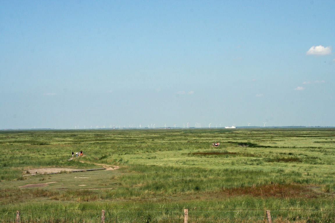Bij Emmadorp kijken we uit over het verdronken land van Saeftinghe met in de verte het havengebied van Antwerpen en daarbij komen ook de koeltorens van de kerncentrale van Doel in zicht.