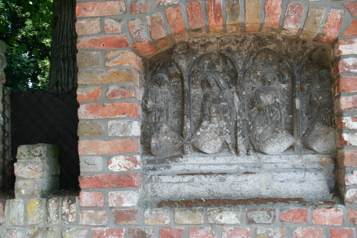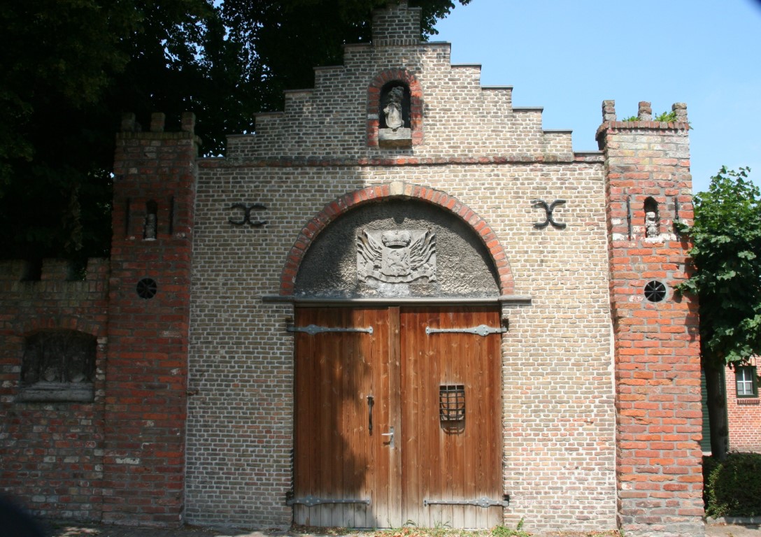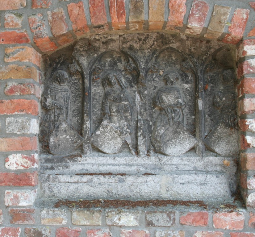 Voormalig koetshuis van het huis te Zande, beschermd vanwege gebeeldhouwde wapenhoudende leeuw met op het wapen 1720 en in reliëf gekroond wapenschild met leeuw der Vereenigde Nederlanden, aan weerszijden trofeeën en eronder de spreuk “Concordia res parvae crescunt” (Steen in boogveld boven deuren; waarschijnlijk ca. 1700). De zwarte reliëfstenen, ingemetseld in de muur, zijn restanten van de graftombe van Joos van Ghisele, erfschout van Hulst en Hulster Ambacht.