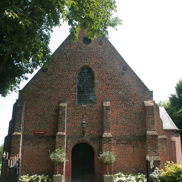 Reeds in 1170 was er sprake van de Zandpolder en in deze polder werd het Hof te Zande gebouwd. De uithof werd in 1348 nog verwoest door de Gentenaren, maar weer opgebouwd. Tijdens het begin van de Tachtigjarige Oorlog werden de gebouwen verwoest. In 1609 besloot men om het kerkje weer te herbouwen. De oostgevel bleef in zijn oorspronkelijke vorm, en de overige delen werden opgebouwd uit het puin van de gebouwen van de uithof. In 1646 kwamen de goederen van de Abdij Ten Duinen aan de Prins van Oranje. Bij verdrag van 1842 kwamen de goederen aan Koning Willem II die ze in 1848 terug schonk aan de Staat, doch de inkomsten ervan zouden aan de Kroon komen. Aldus werd het een Kroondomein, beheerd door telgen uit het Huis Collot d’Escury. Van de gebouwen rest slechts het kerkje, dat sinds 1648 in handen van de Hervormden is.