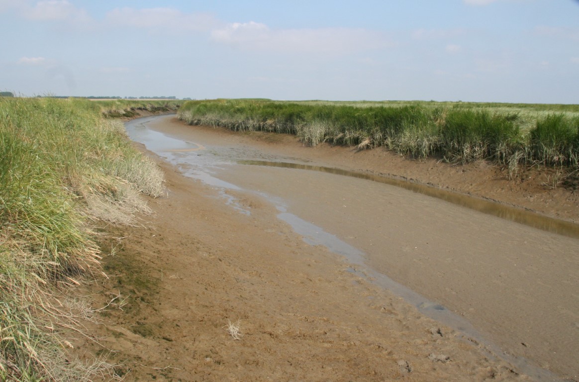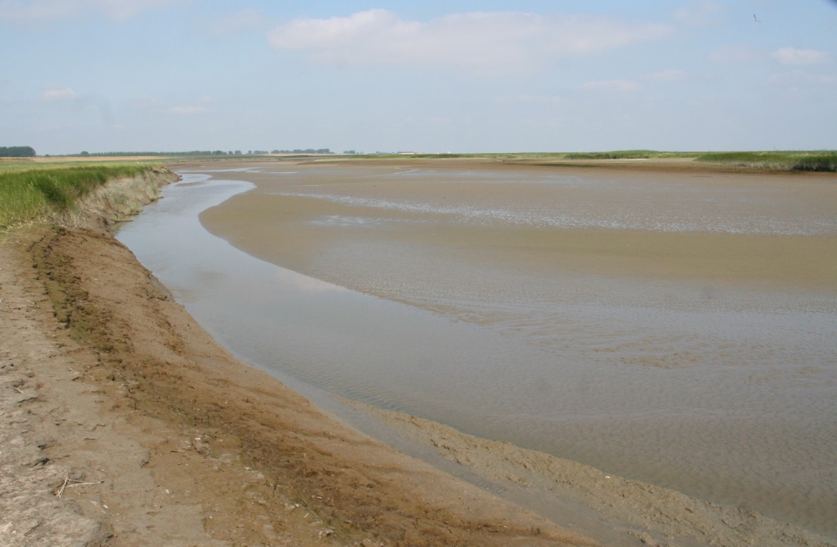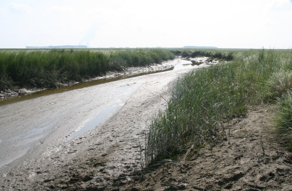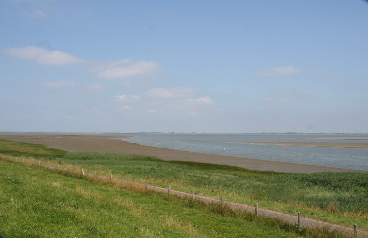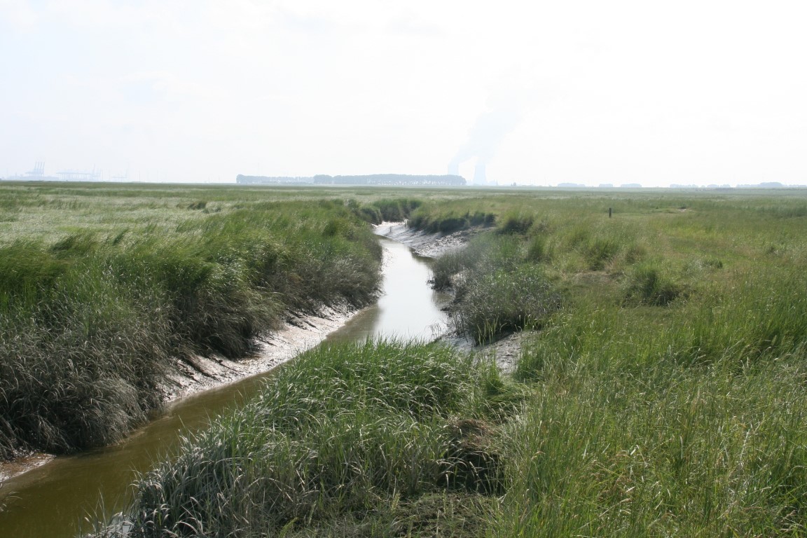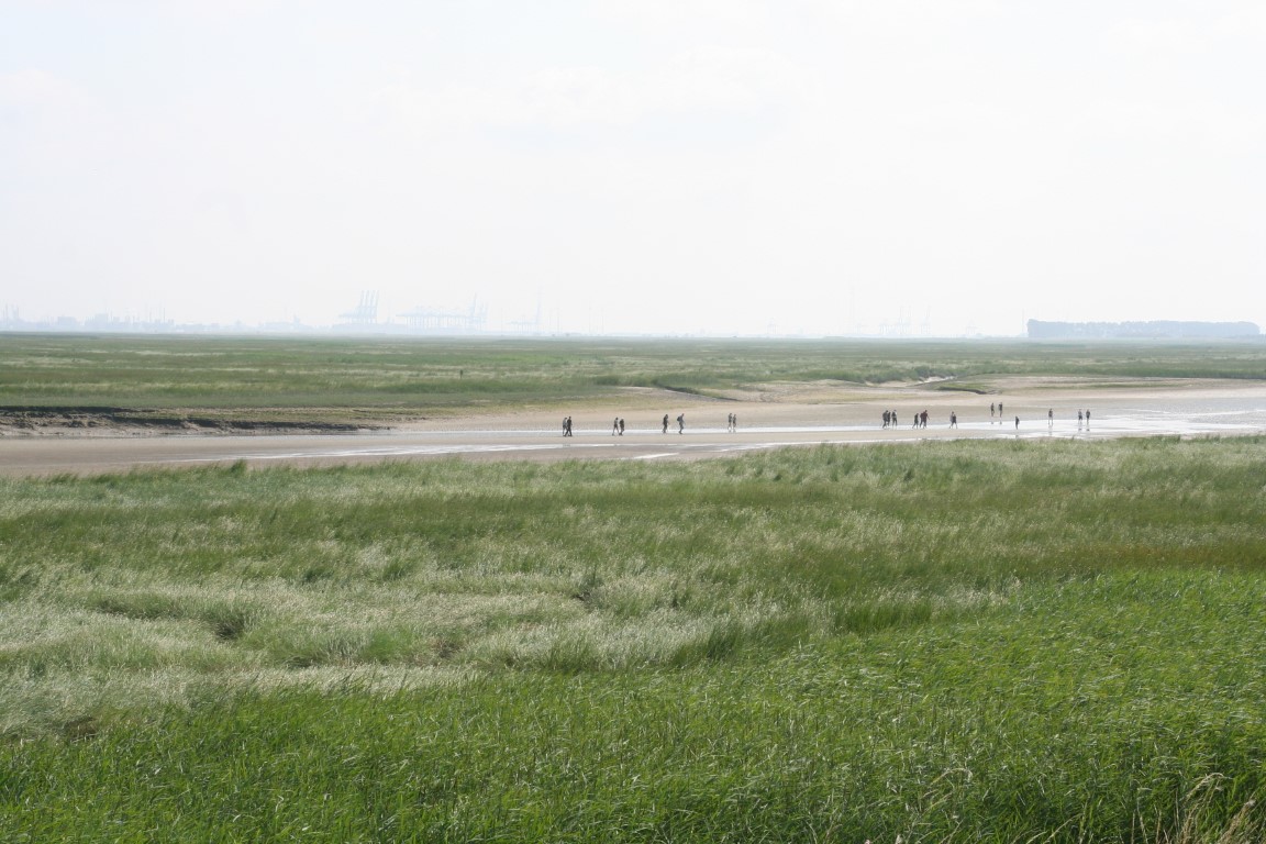 Het begin van de wandeling gaat voor een gedeelte door “het verdronken land van Saeftinghe”.