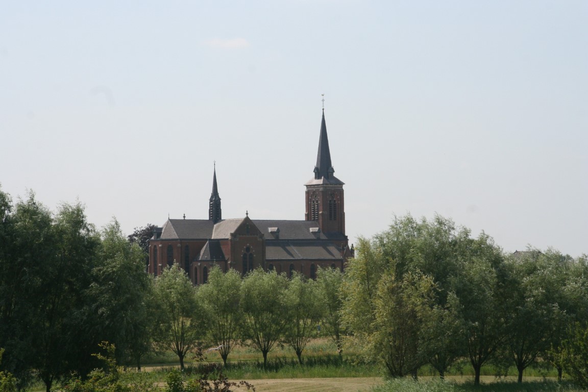 Met in de verte de kerk van Lamswaarde wandelen we verder richting Kloosterzande.