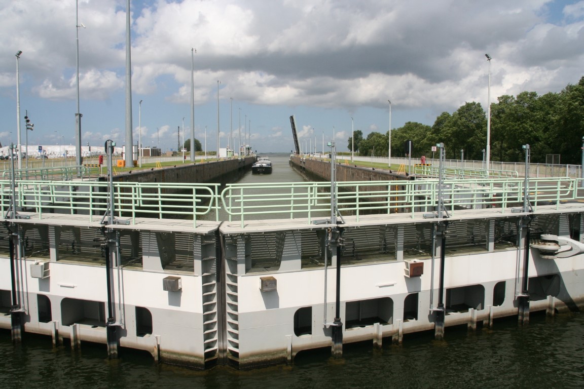 De Westsluis of zeesluis, die een lengte heeft van 290 meter en een breedte van 40 meter. Ze is geschikt voor zeeschepen met een diepgang tot 12,5 meter en een laadvermogen van 83.000 ton. De sluis is gebouwd in 1968