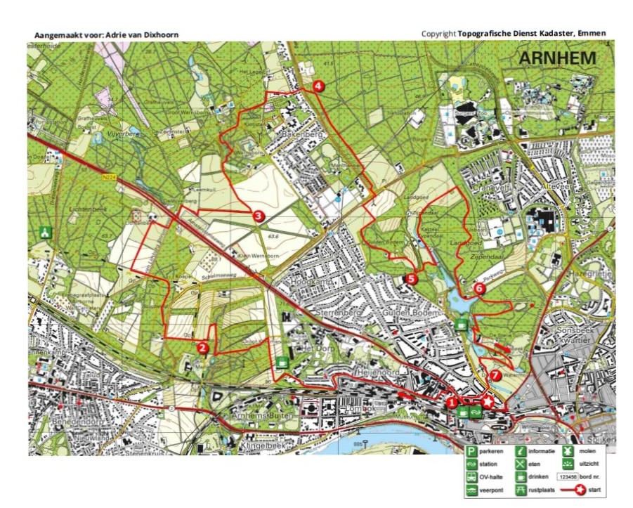 Een wandeling door de vele landgoederen en parken aan de noordkant van Arnhem. We wandelen door maar liefst tien schitterende landgoederen en parken: Groot Klimmendaal, Mariëndaal (met de befaamde Groene Bedstee), Boschveld, Lichtenbeek, Hoog Erf, Warnsborn, Schaarsbergen, Gulden Bodem, Zijpendaal (met kasteel) en tot slot het prachtige park Sonsbeek met het schitterende landhuis, hertenpark, de vele vijvers, fonteinen, waterval en 2 watermolens.