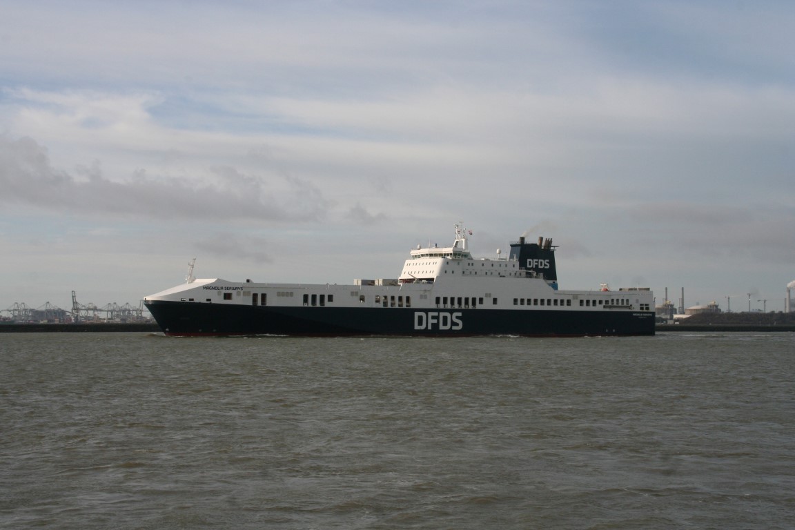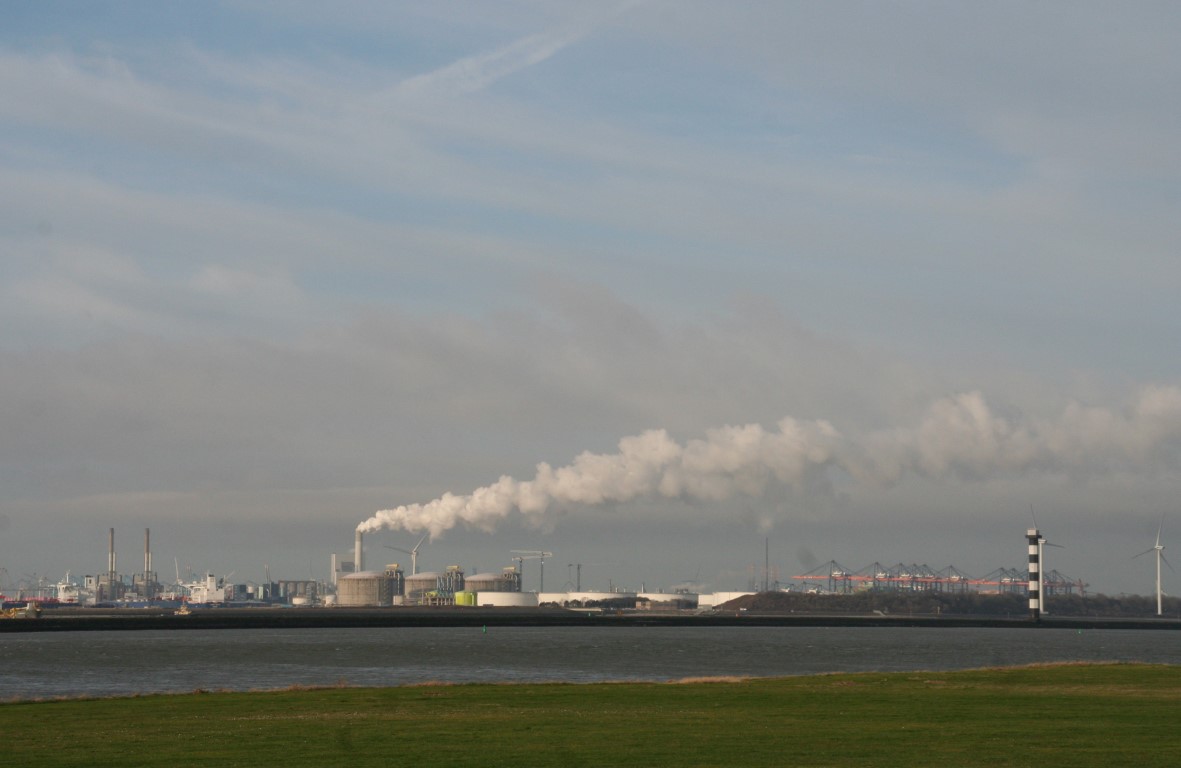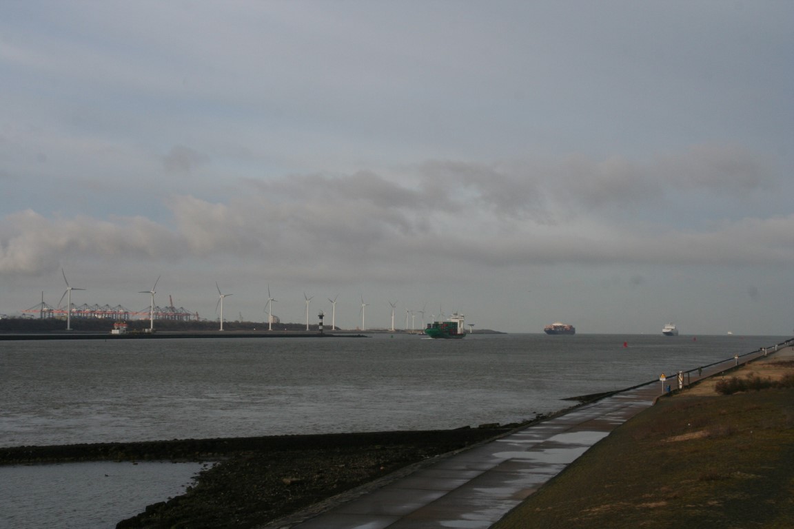 Na de brug te hebben gepasseerd komt de route weer bij de Nieuwe Waterweg waar we de Maeslandkering zien.