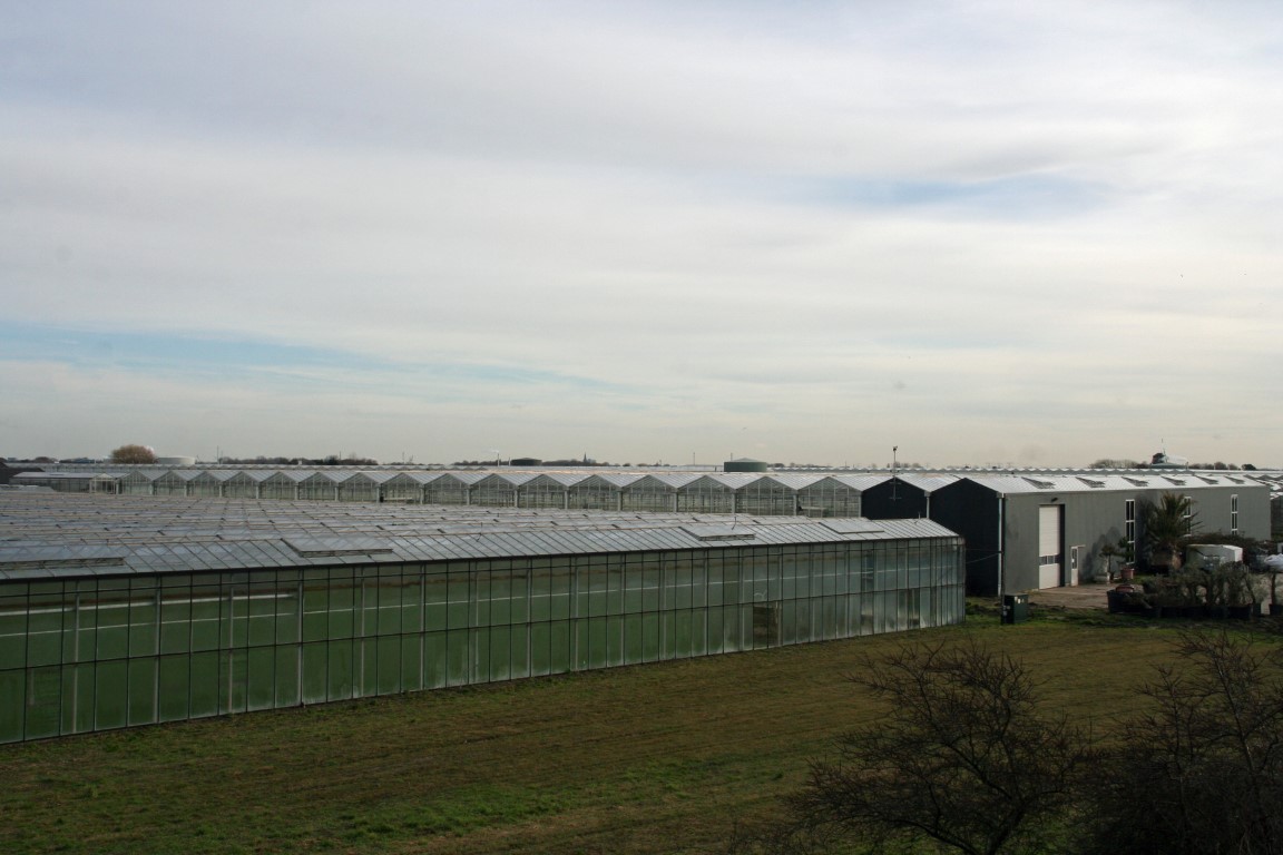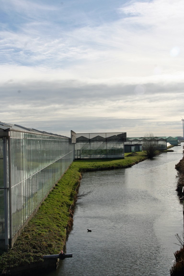 We komen nu in het kassengebied, “De Glazen Stad” Eindeloze glazen kassen!