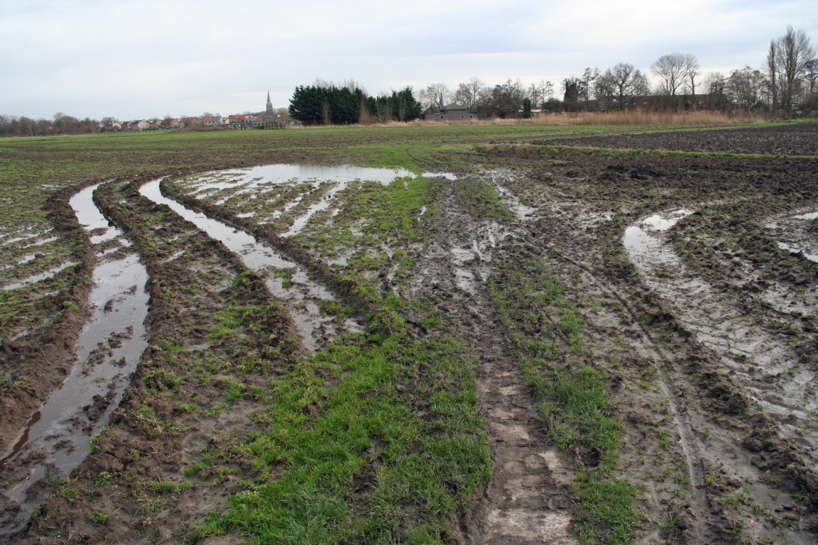 Het laatste gedeelte van de route gaat door het weiland richting Maasland. Dat dit weiland laaggelegen is, is wel te zien het is er erg nat!