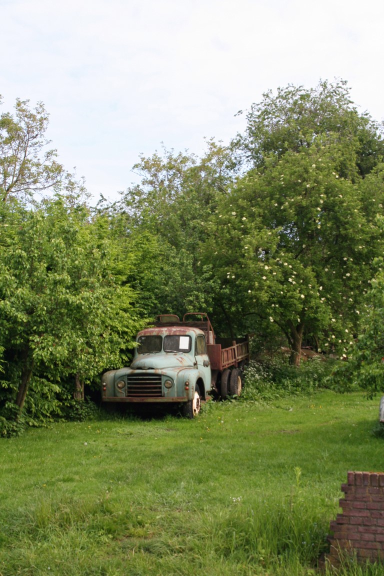 Foto rechts een Citroën P55 kiepwagen met een 6 cilinder 5 liter motor.