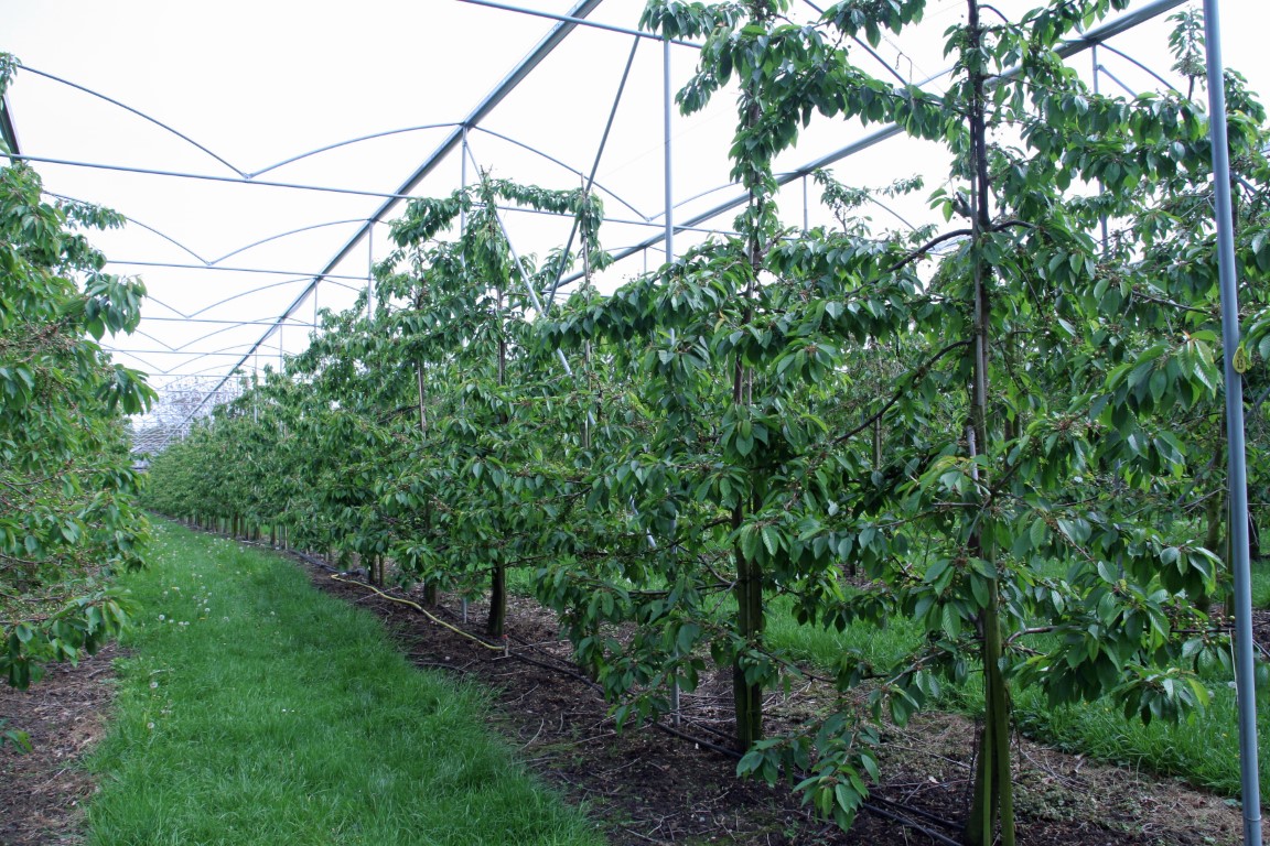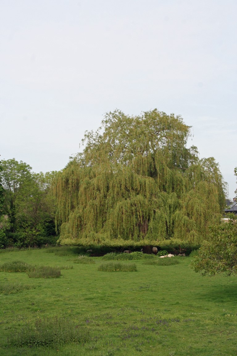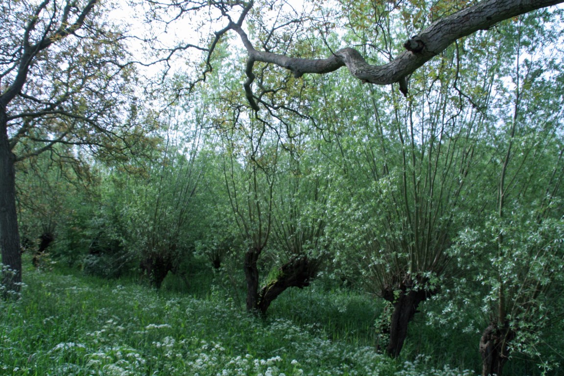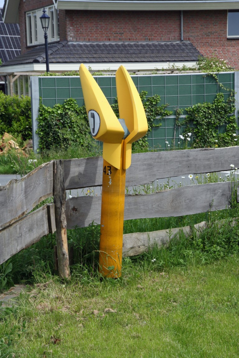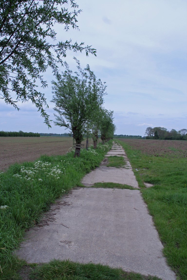 We wandelen door de Betuwe wat goed te zien is aan het aantal boomgaarden.