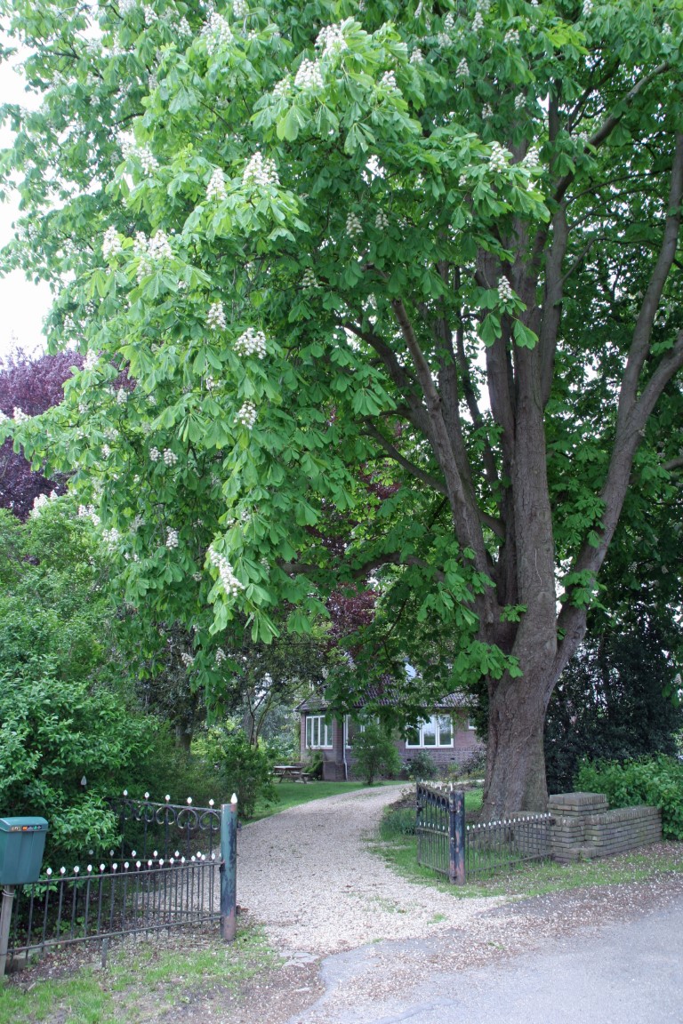 De route gaat verder over de Appeldijk en wandelen daarbij tussen de appelbomen. Een aantal bomen staat nog in de bloesem.