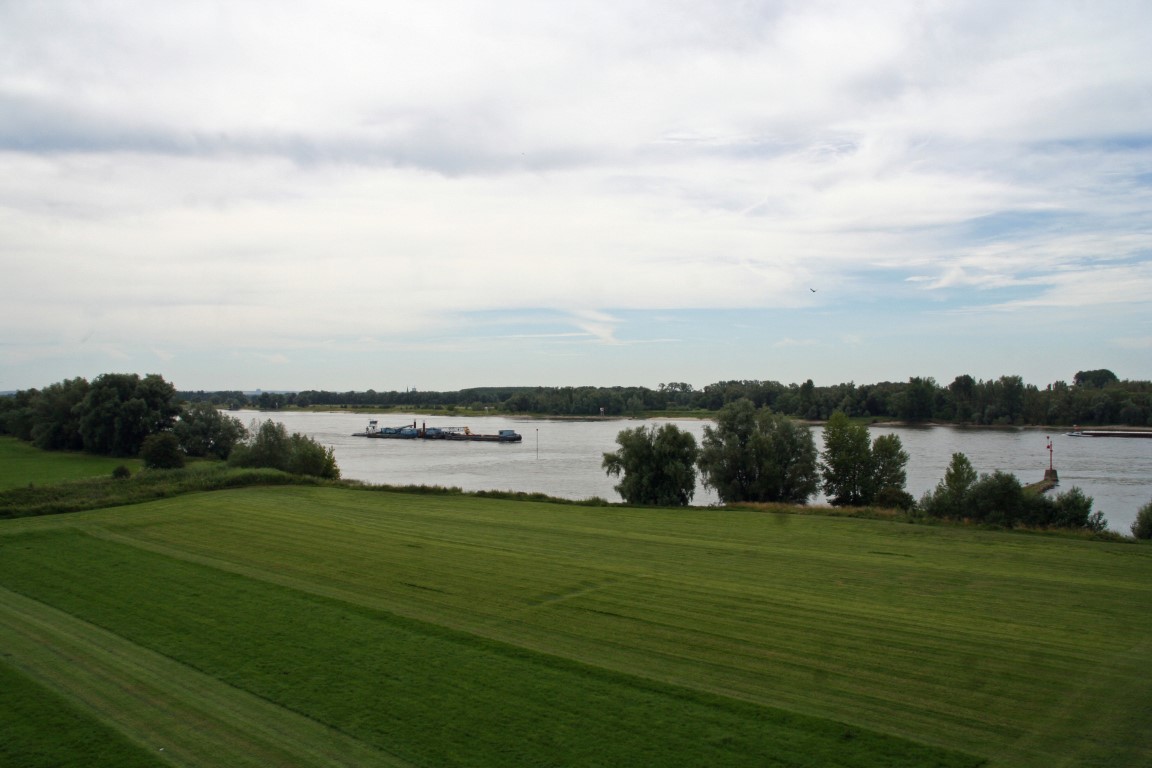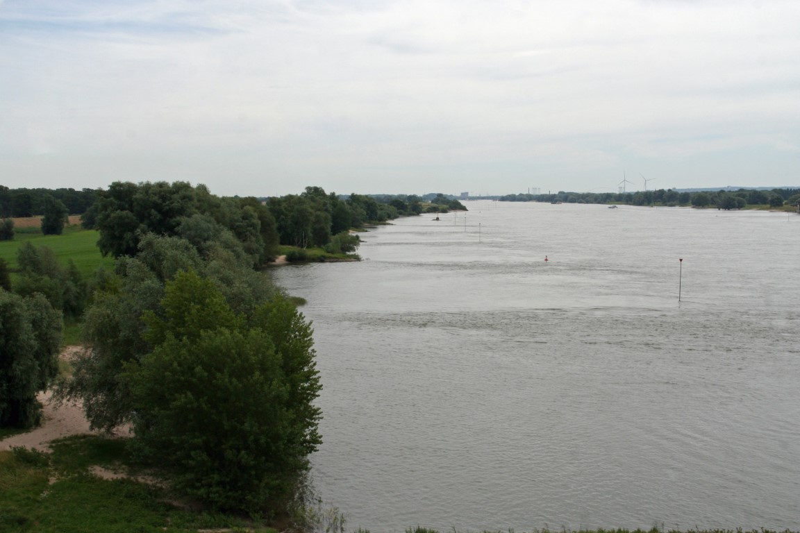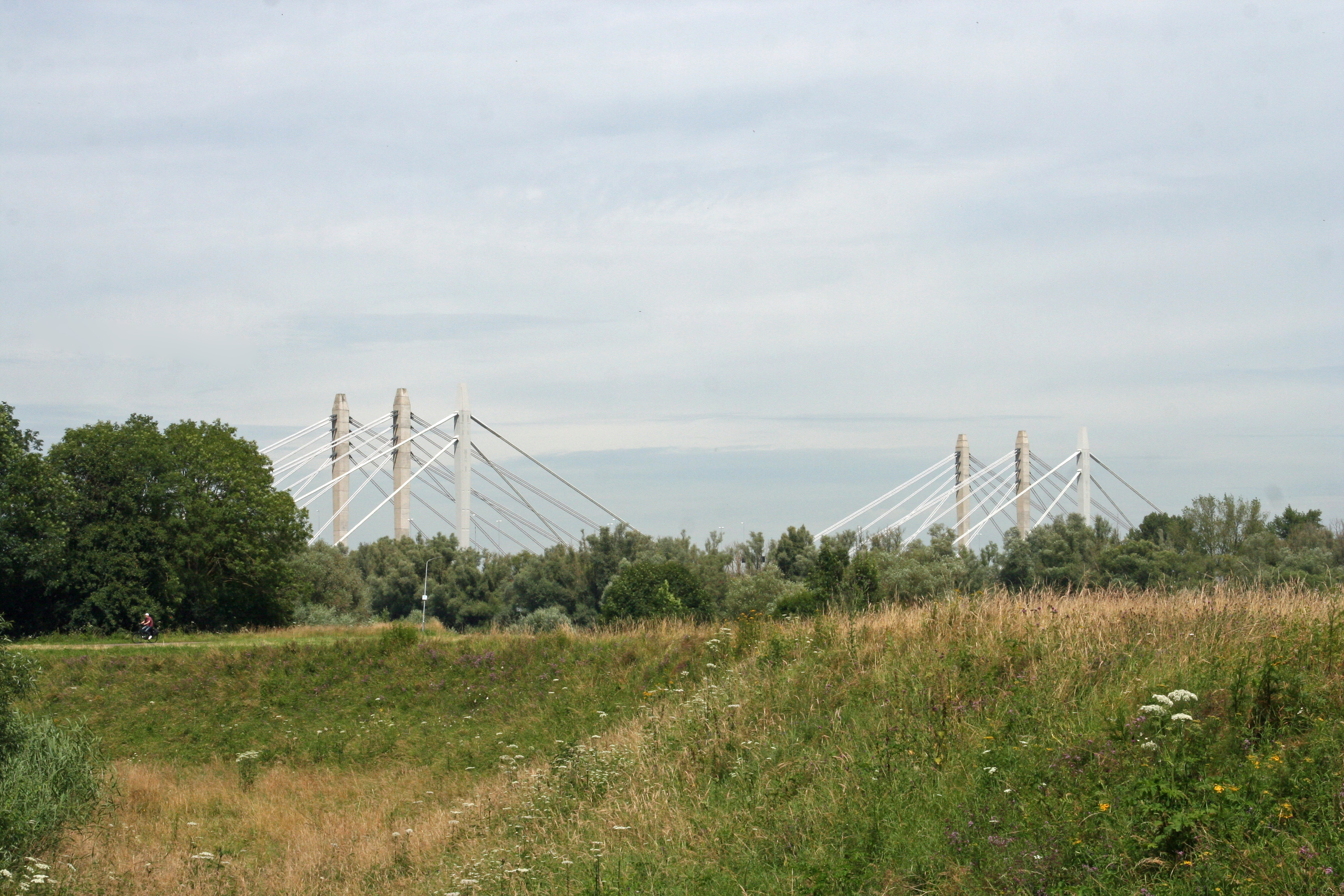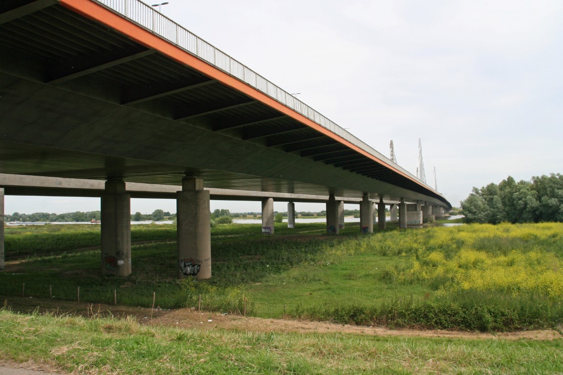 In de verte doemt de Tacitusbrug, de brug over de Waal, op.