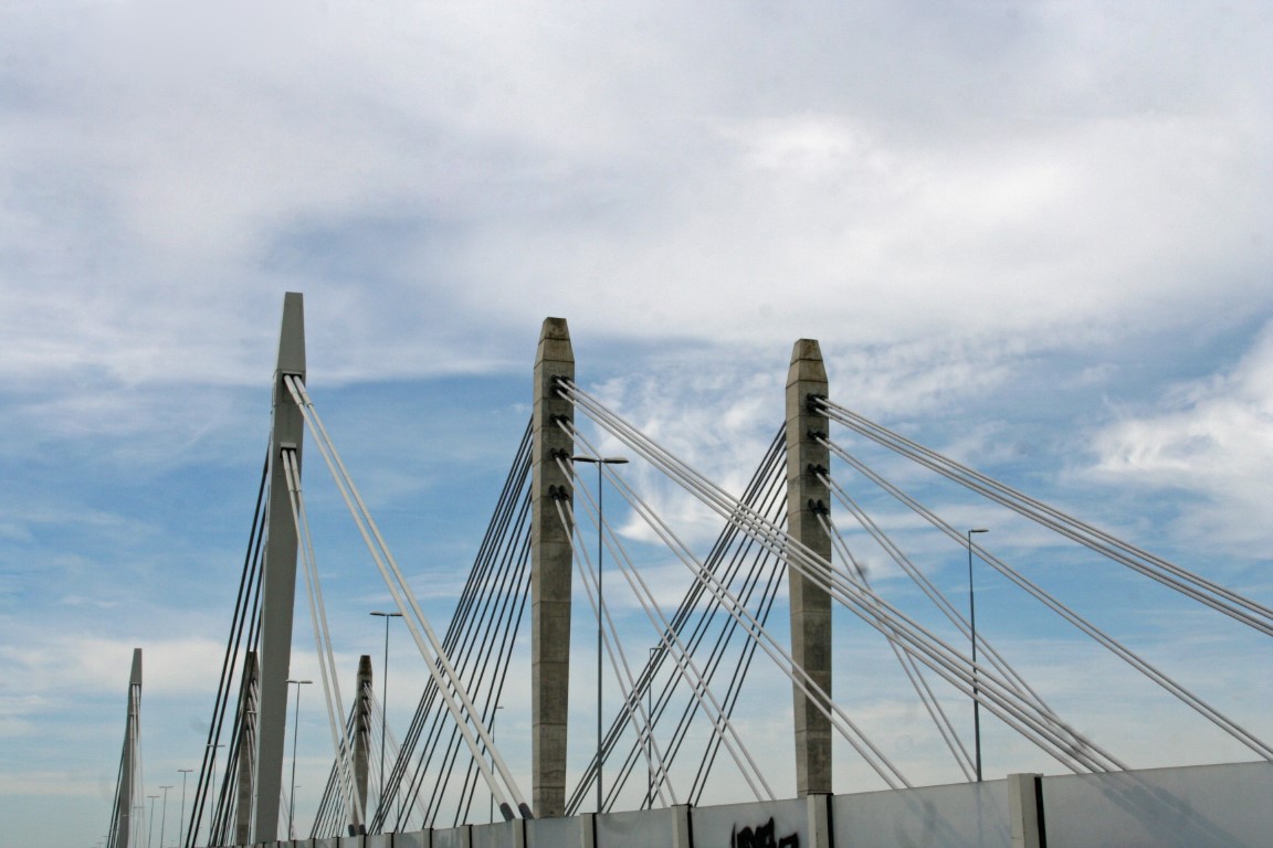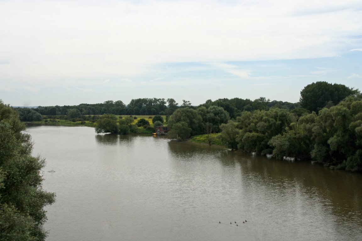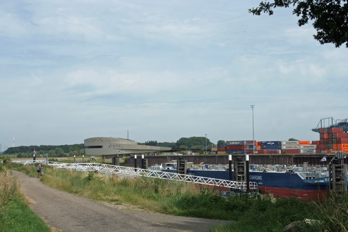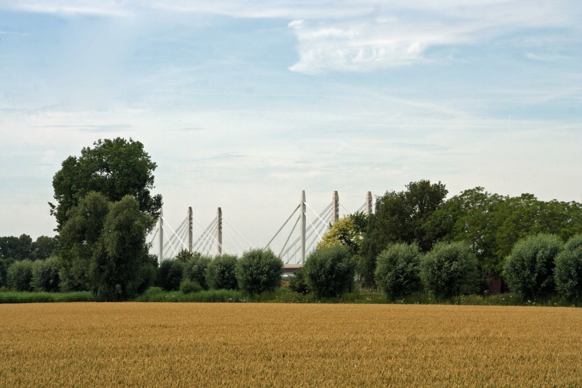 In de verte doemt de Tacitusbrug, de brug over de Waal, op.