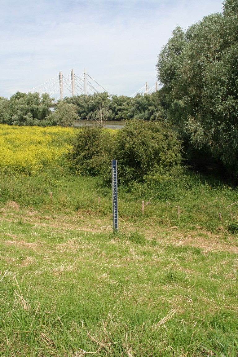 De plaats waar deze NAP meter staat geeft wel aan dat het water in de Waal flink hoger kan staan.
