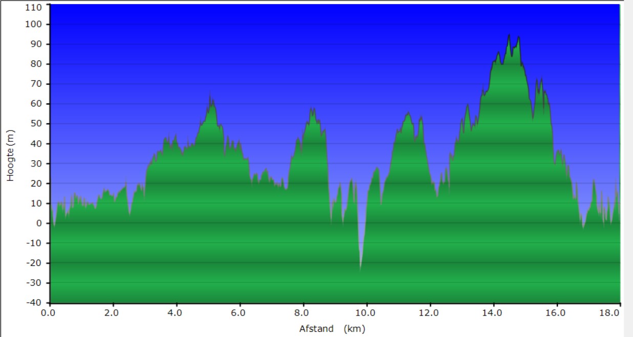Hoogte profiel laatste wandeling Grote Rivierenpad