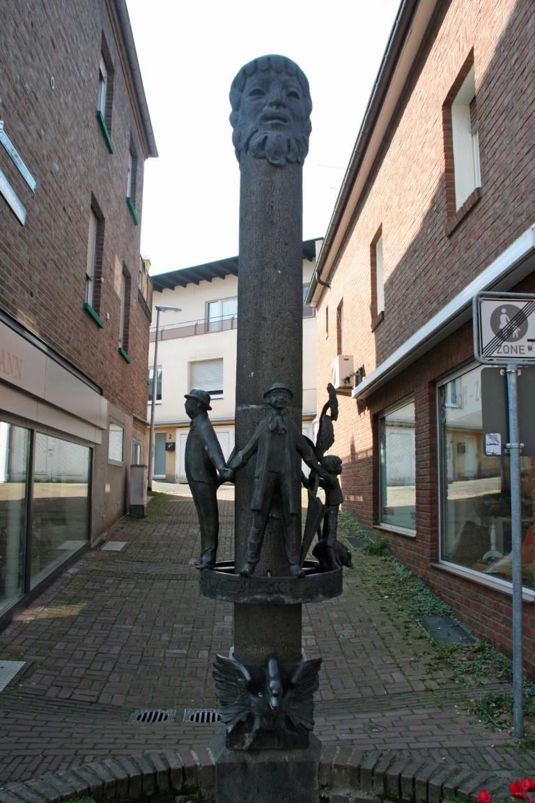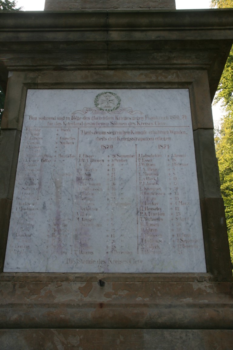 Rond 1760 werd een houten stèle opgericht, waarop een koperen bal zat – de “koperen knop”! In 1856/57 werd op dezelfde plaats een stenen obelisk opgericht, bekroond door een gouden bal en een adelaar met uitgestrekte vleugels. Later werd een marmeren gedenkplaat aan de obelisk bevestigd, ter nagedachtenis aan de soldaten uit het district Kleve die stierven in de Frans-Duitse oorlog van 1870/71.