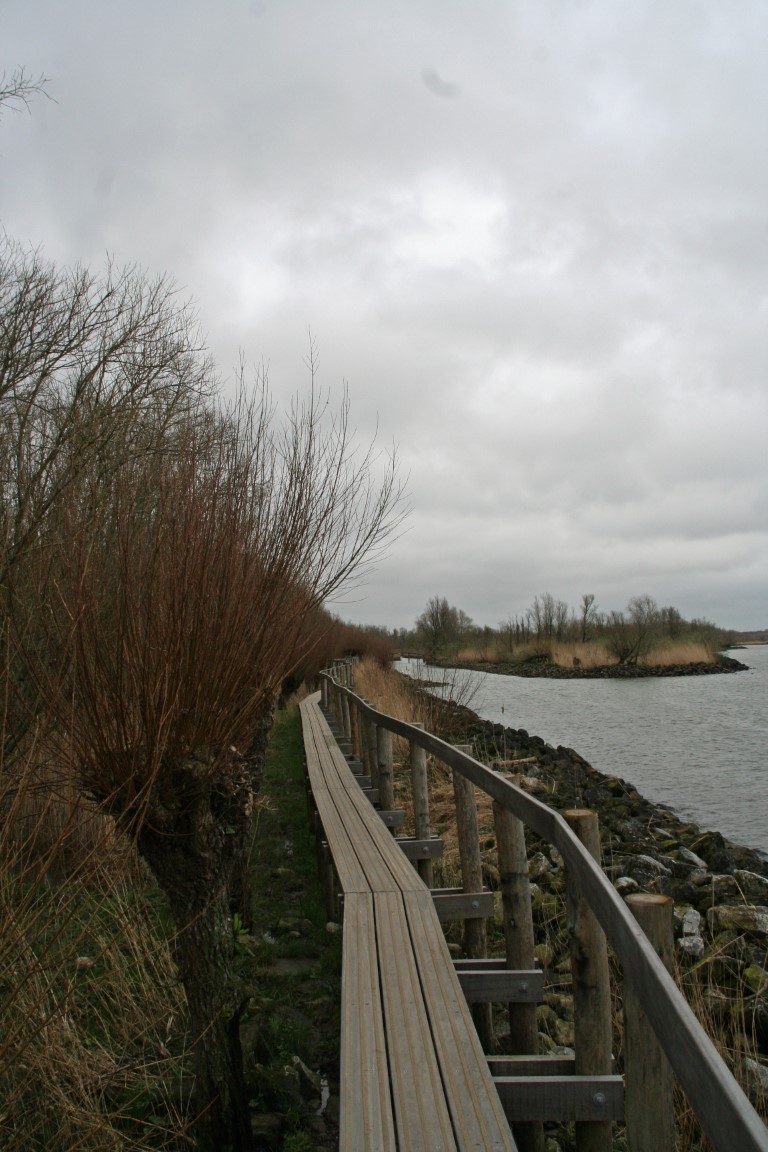 Dit is een pad met een gedeelte vlonderpad van 150 meter lang hoog boven de grond langs de oever van de rivier.