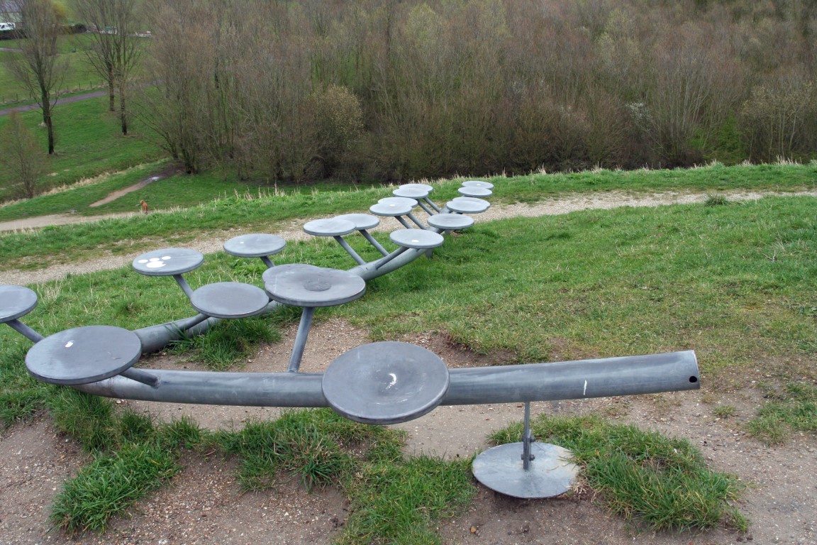 Op de heuvel staat het kunstwerk Sky, Moon, Mirror, Environment uit 2006. Het bestaat uit een ronde holle spiegel van ca 3,5 meter in doorsnede. Afhankelijk van de afstand van de beschouwer tot het kunstwerk reflecteert het de omgeving. Van dichtbij spiegelt het de bezoeker en het omringende landschap in een normale weergave. Als meer afstand tot het object genomen wordt slaat het beeld op een bepaald punt om en toont de spiegel landschap en bezoeker ondersteboven. Het kunstwerk is in de zomer van 2009 opnieuw bewerkt. Door de holle spiegel ontstond er een brandpunt zodra de zon scheen, en als oplossing is hiervoor bedacht dat er nog een (bolle) plaat bovenop werd gelast. Het is nu een bolle spiegel.