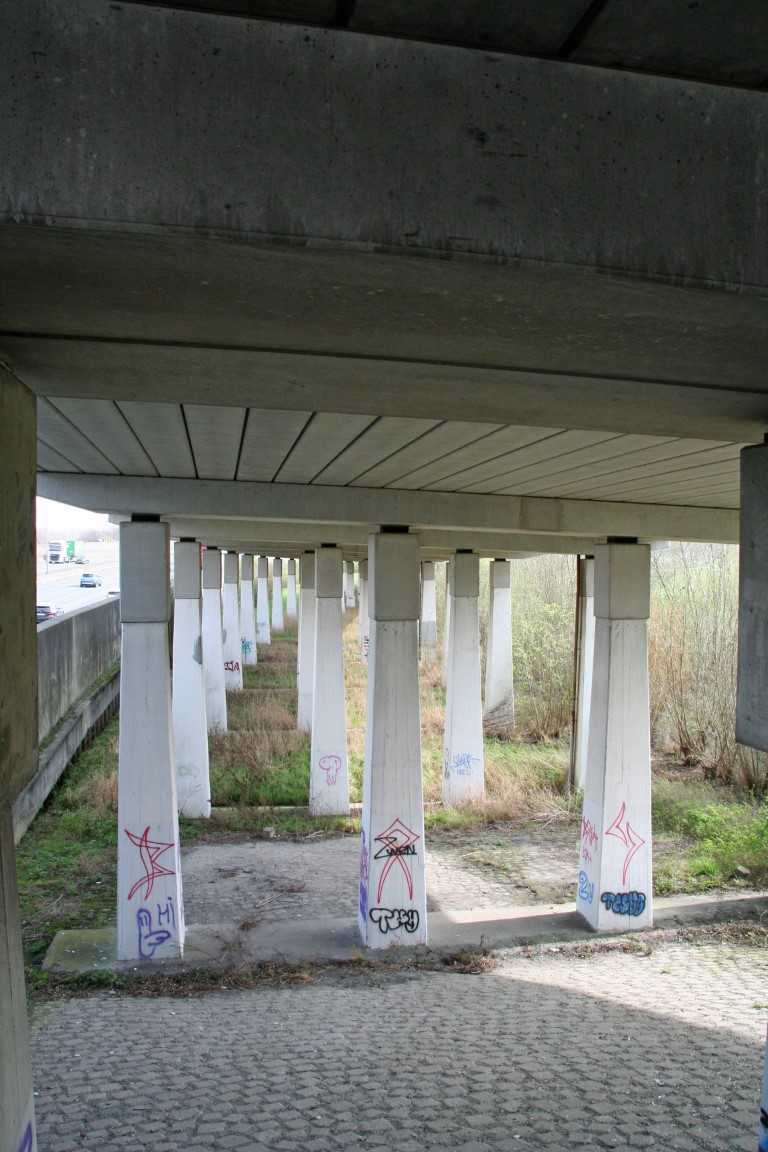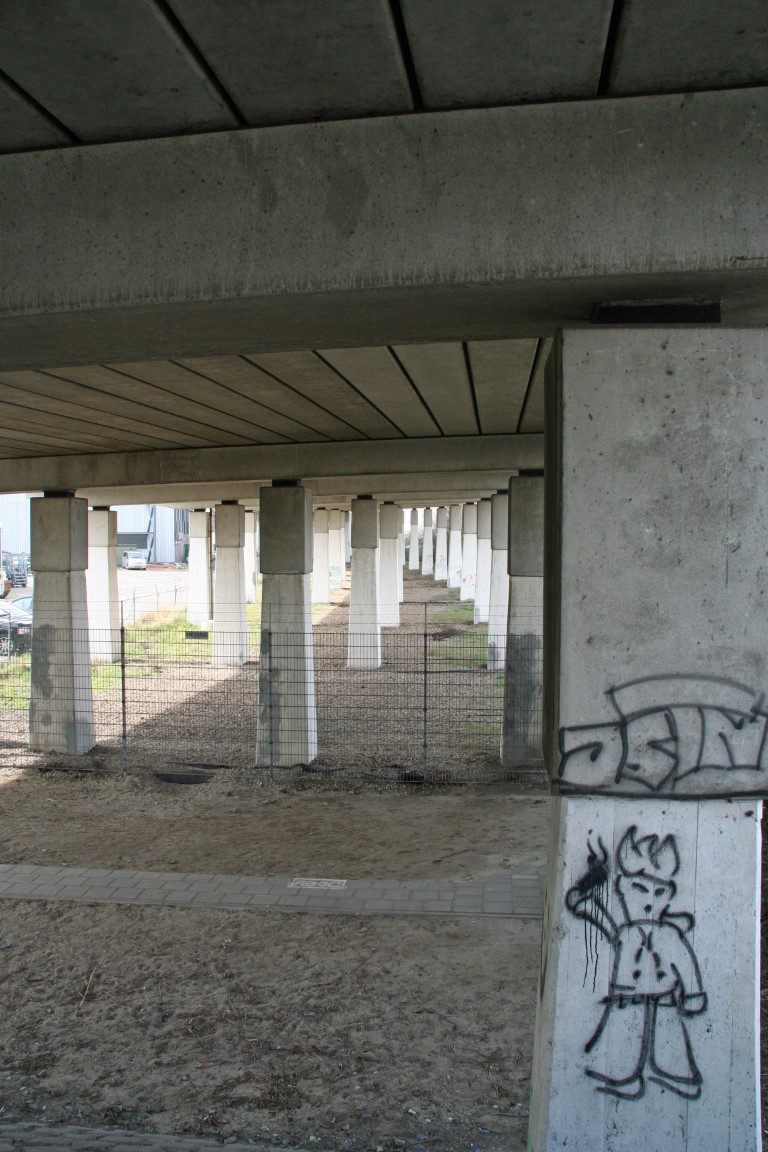 Deze pilaren dragen de wegconstructie van de op- en afrit van de brug over de Noord.