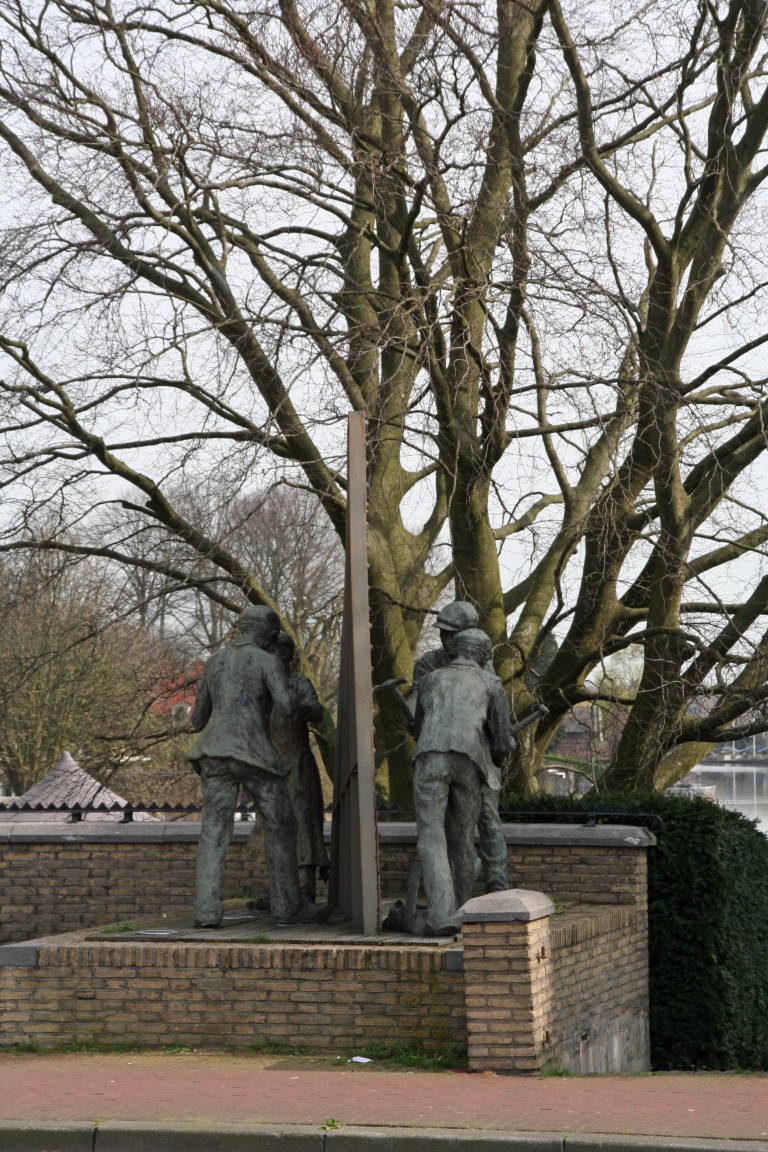 Beeldengroep van vier beroepen uit de scheepsbouw. Het betreft de beroepen klinker, aanhouder, nagelheter en ponser.
