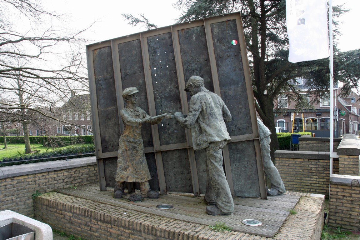Beeld ter ere van de vroegere vlasarbeiders in Rijsoord