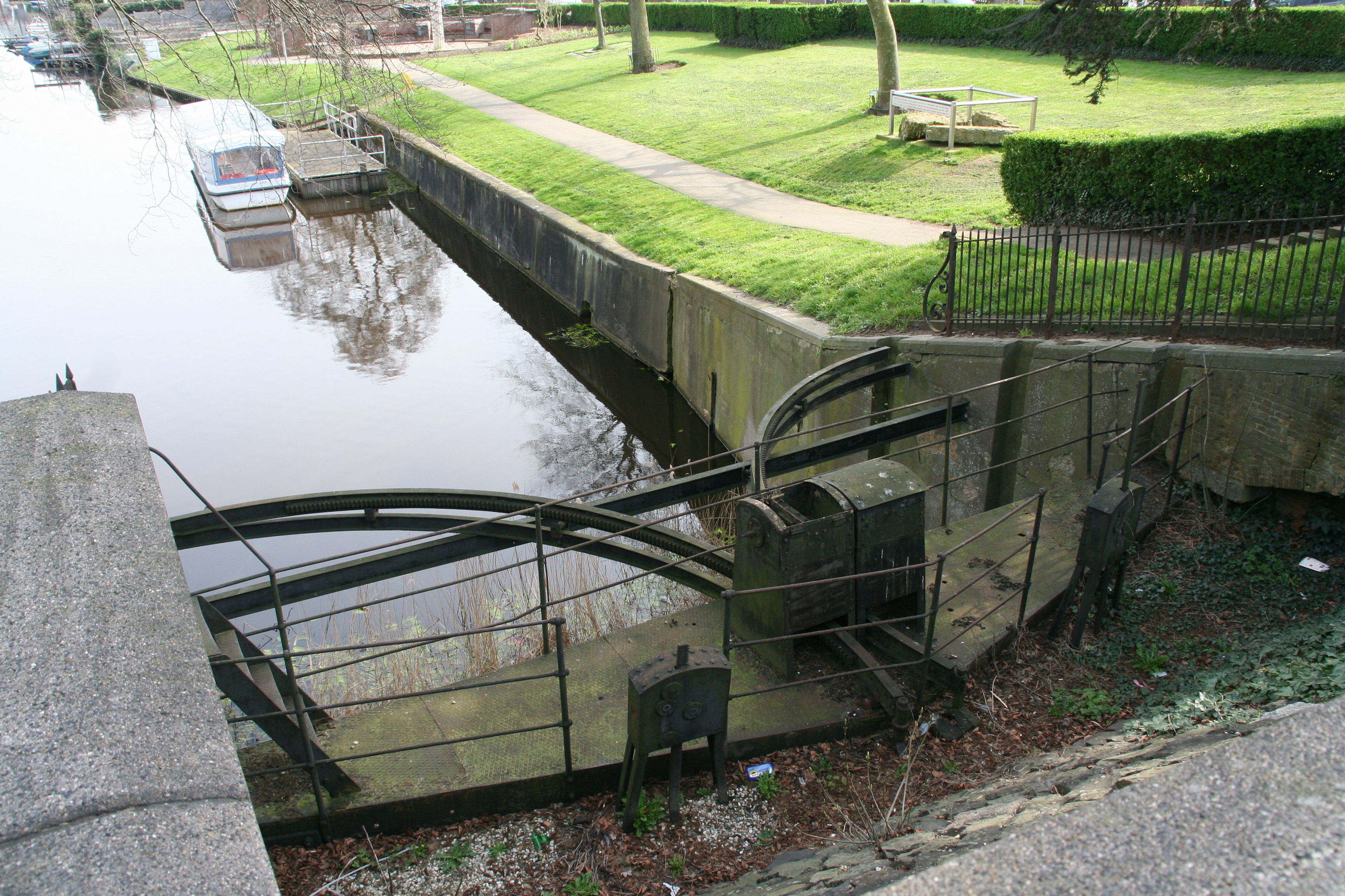 Tijdens de wandeling werd de brug over de Noord geopend om een klein jacht te laten passeren.