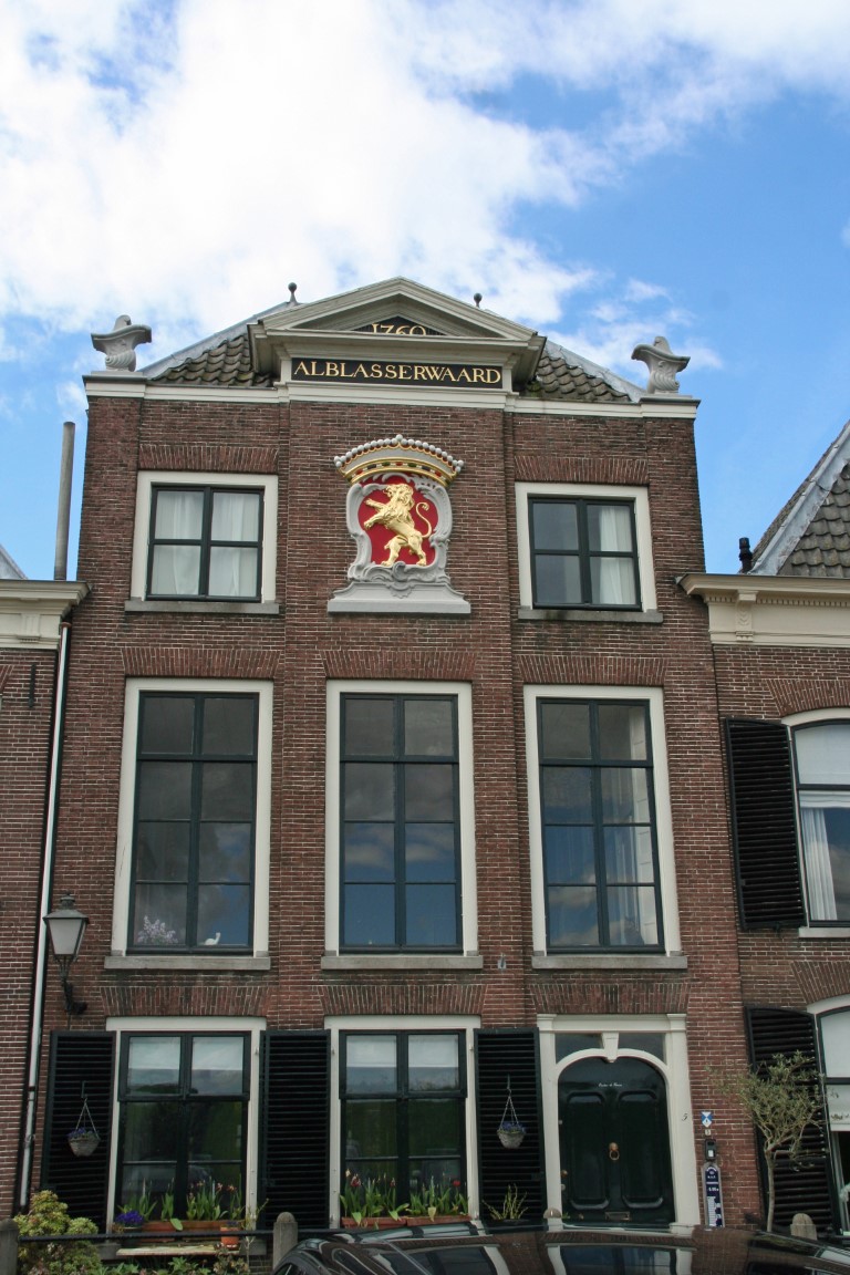 Ambachtshuis van de Alblasserwaard, getooid met het het jaartal 1760 en het wapen van het hoogheemraadschap van de Alblasserwaard. Het jaartal geeft het jaar aan waarin het pand met een verdieping verhoogd is. Vanaf dat jaar werd het huis gebruikt als logement voor de vergaderingen van
