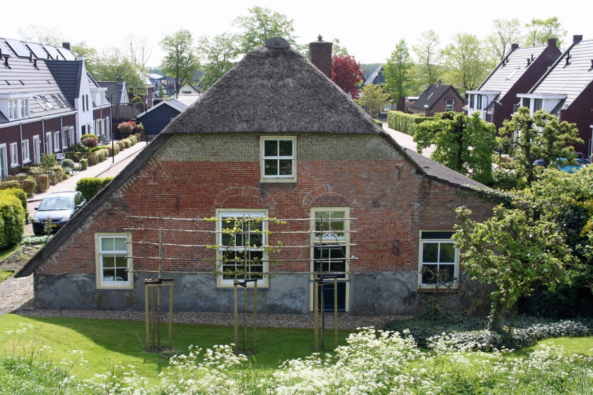 Foto rechtsboven een boerderij, genaamd, Kort aan den oever, uit 1706. Onderste foto een boerderij uit 1894.