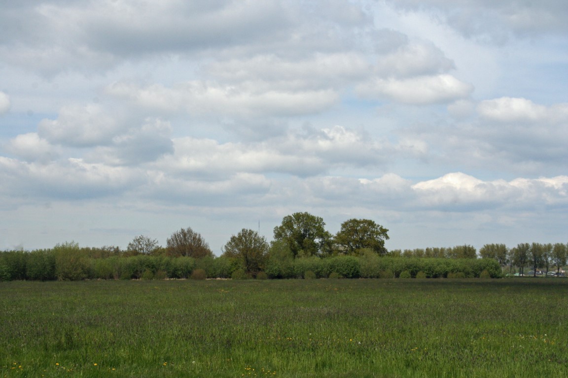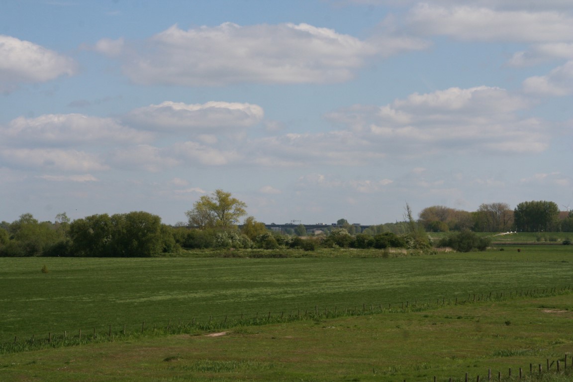 Verder wandelen met aan de ene kant in de verte de rivier de Lek.