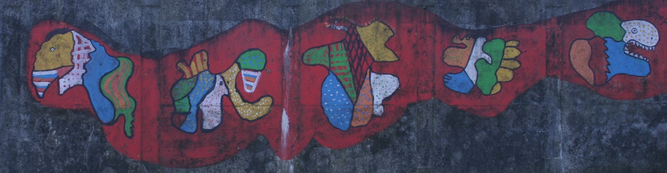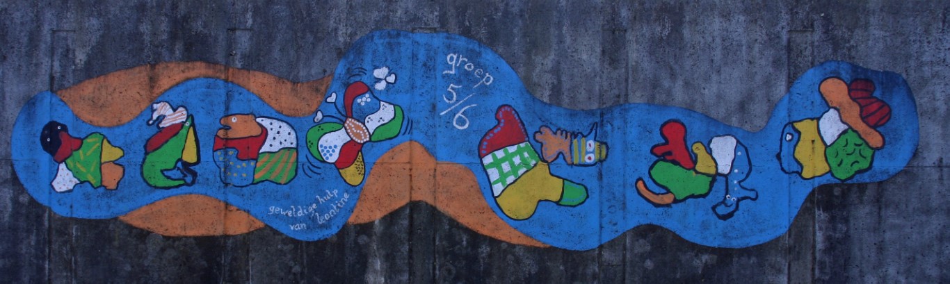 Een kleurrijk geheel in de tunnel onder de provinciale weg door. Gemaakt door de leerlingen van de basisschool.