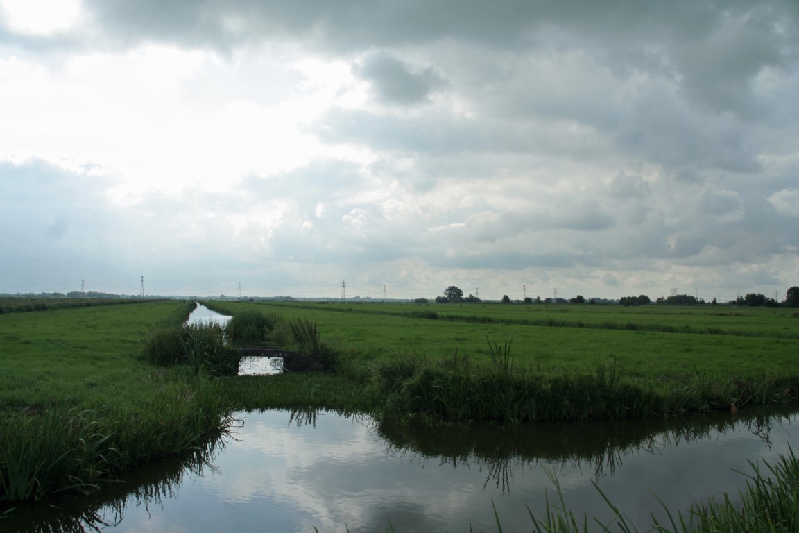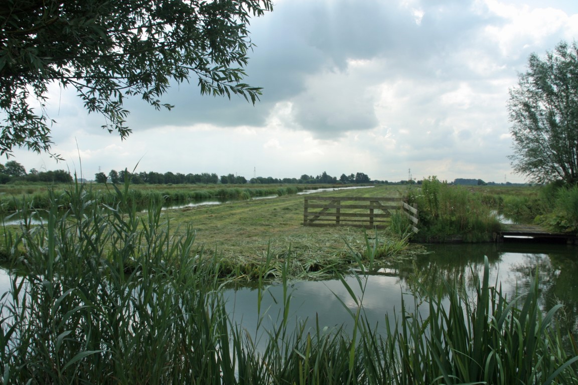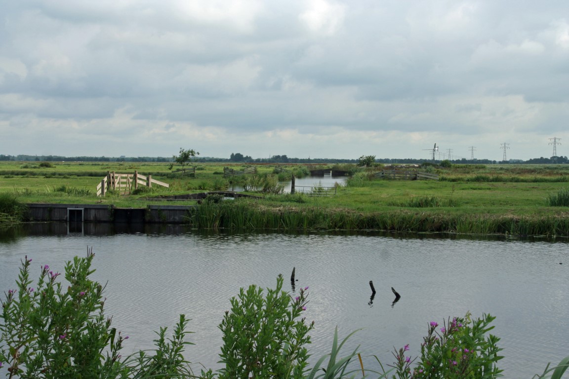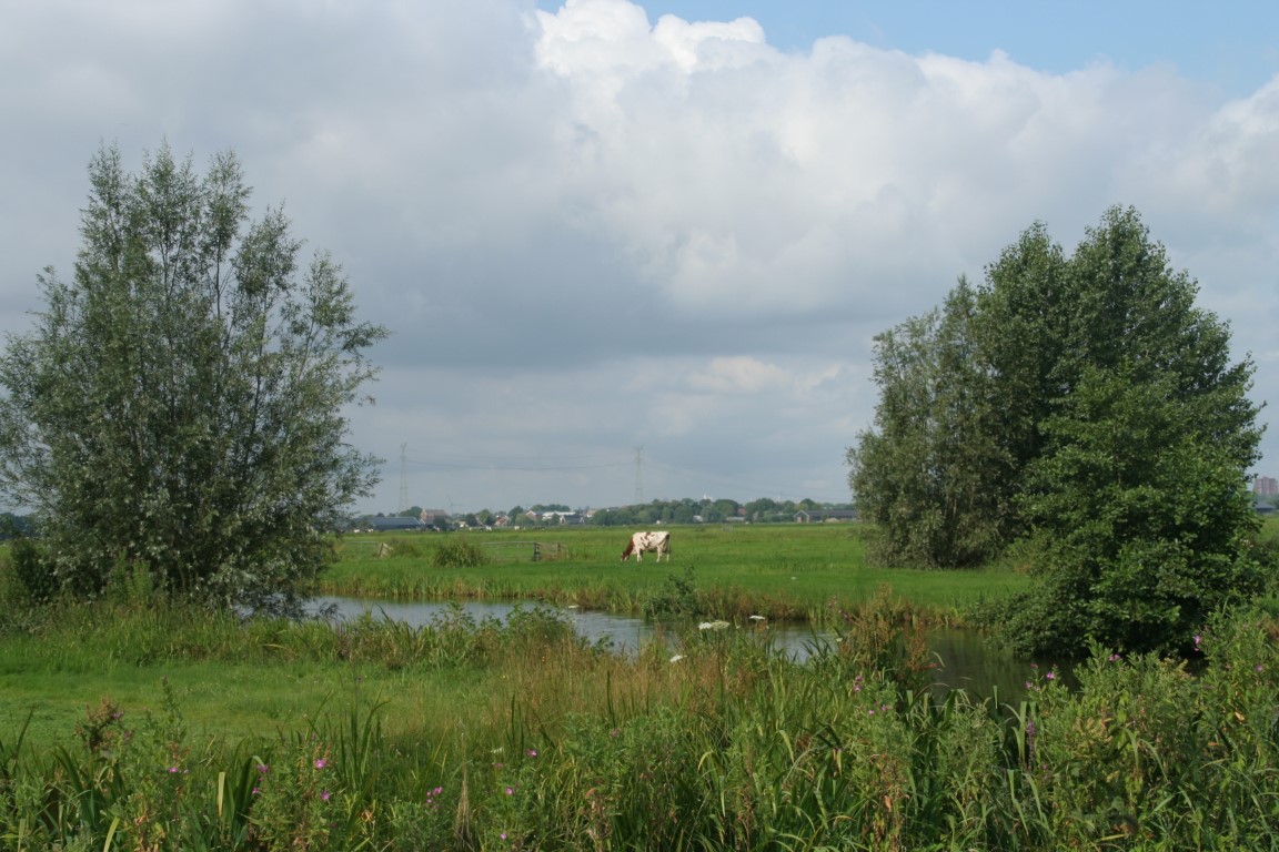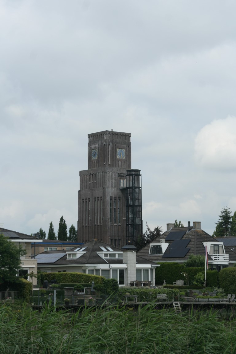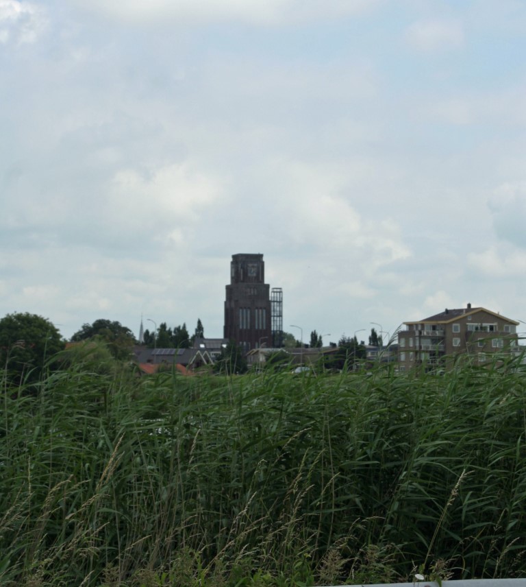 In de verte doemt de voormalige watertoren van Moordrecht op.