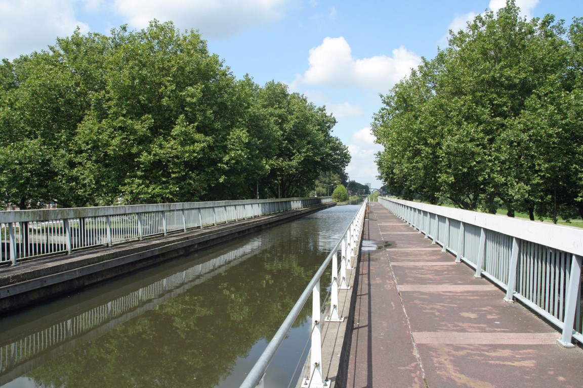 De waterdrager. Aquaduct dat twee delen van het dorp in twee verschillende polders verbindt, zonder gebruik te maken van een brug.