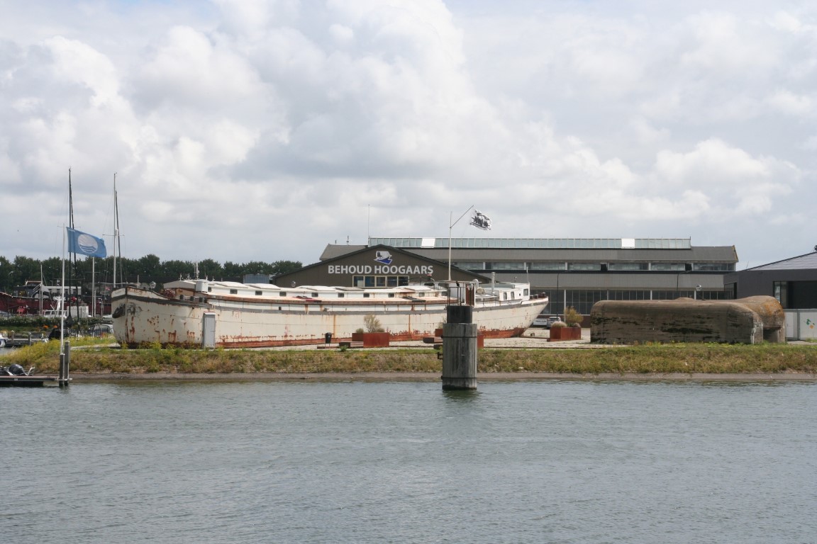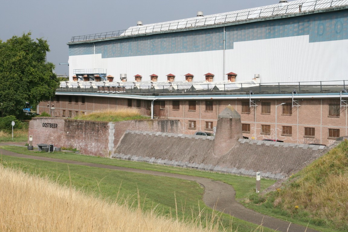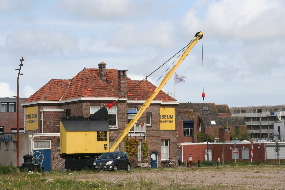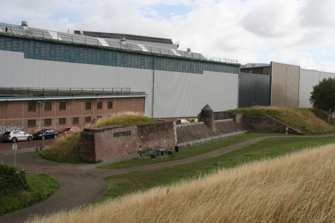 Op bovenstaande foto’s zien we oude en oudere geschiedenis in Vlissingen. De oude geschiedenis betreft de gebouwen en de heel oude geschiedenis de restanten van een Napoleontisch vestingwerk uit begin 1800. In de gebouwen was de Koninklijke Maatschappij De Schelde gevestigd. Dit was van 1875 tot 1983 een scheepswerf annex machinefabriek. Vanaf 1983 tot heden is er met deze maatschappij veel gebeurd. Tegenwoordig is in dit gebied een scheepsbouwer van luxe jachten gevestigd. De Oostbeer maakte samen met de Westbeer deel uit van de Vlissingse zeeversterkingen. De Oostbeer is een gemetselde stenen dam met schuine kanten. Aan de bovenzijde is een ‘ezelsrug’ aangebracht van gladde natuurstenen. Deze ezelsrug is in het midden voorzien van een zogenaamde monnik, een massief rond torentje met een zogenaamde gladde, afgedekte muts. Dit alles om aanvallende soldaten te beletten de vesting via de beer te bereiken.