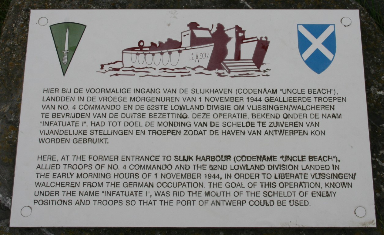 Het Landingsmonument herinnert aan de amfibische landing van Britse, Nederlandse en Franse commando’s van het No. 4 Commando op 1 november 1944.