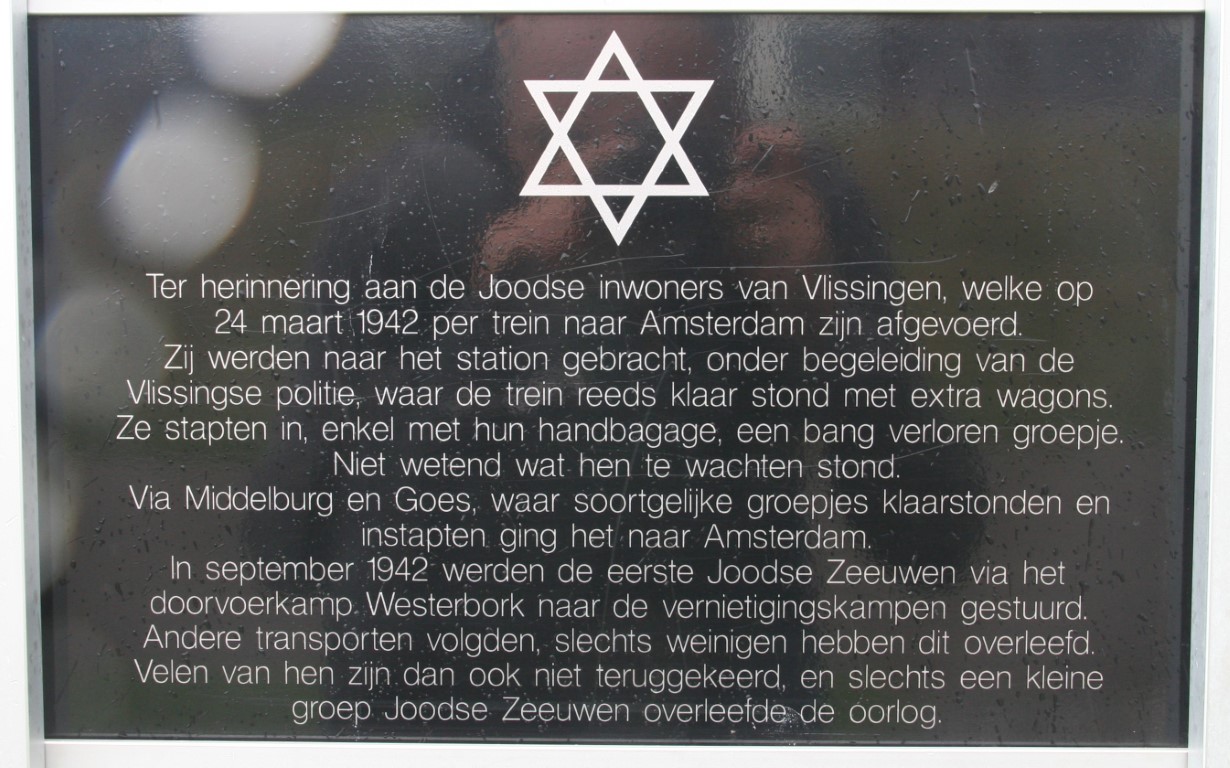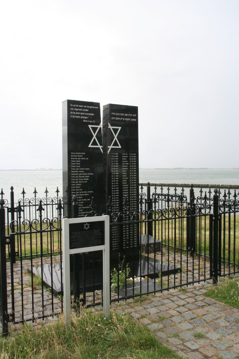 Monument onthuld door de nabestaanden van veertig op 24 maart 1942 weggevoerde Joodse inwoners van Vlissingen. Het beeld bestaat uit twee zuilen met daarbovenop prikkeldraad. Het is één zuil, gebroken in twee delen.
