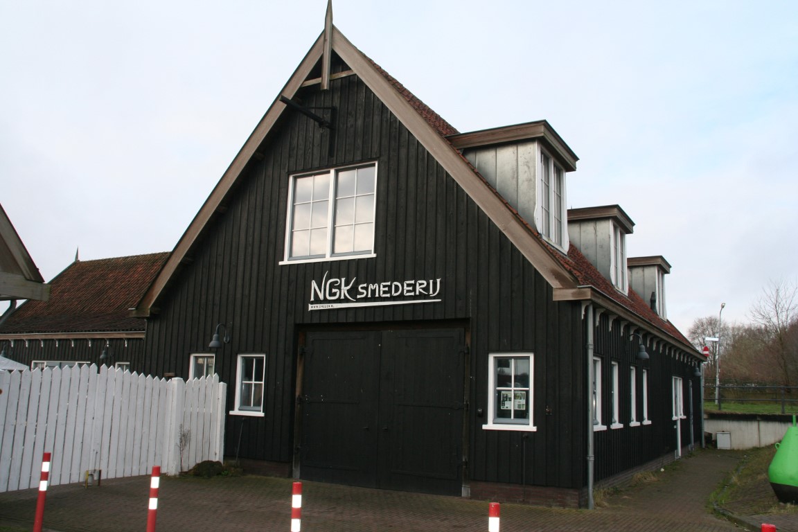 De botter was het visserschip op de Zuiderzee en in hoogtijdagen visten er zo’n 3000 schuiten en in Huizen waren 145 botters geregistreerd. De smederij is een onderdeel van van de werf. (NGK staat voor Nederlands Gilde van de Kunstsmeden)