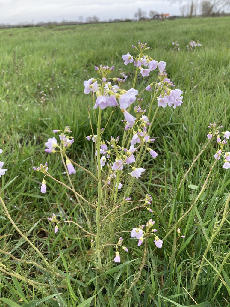 Links: Pinksterbloem. De Pinksterbloem siert met zijn trosvormige bloeiwijzen met bloemen met zacht lila kroonbladeren in het vroege voorjaar van april tot juni onze vochtige tot natte graslanden. Rechts: Gewoon Speenkruid. Gewoon speenkruid is een tot 30 cm hoge, onbehaarde voorjaarsbloeier uit de Ranonkelfamilie. Bij slecht weer blijven de bloemen gesloten, maar bij zon spreidt de bloem zich wijd open. Na de bloei sterft het bovengrondse deel van de plant in de voorzomer af, de ondergrondse knolletjes van enkele millimeters lengte blijven in leven voor het volgende jaar.